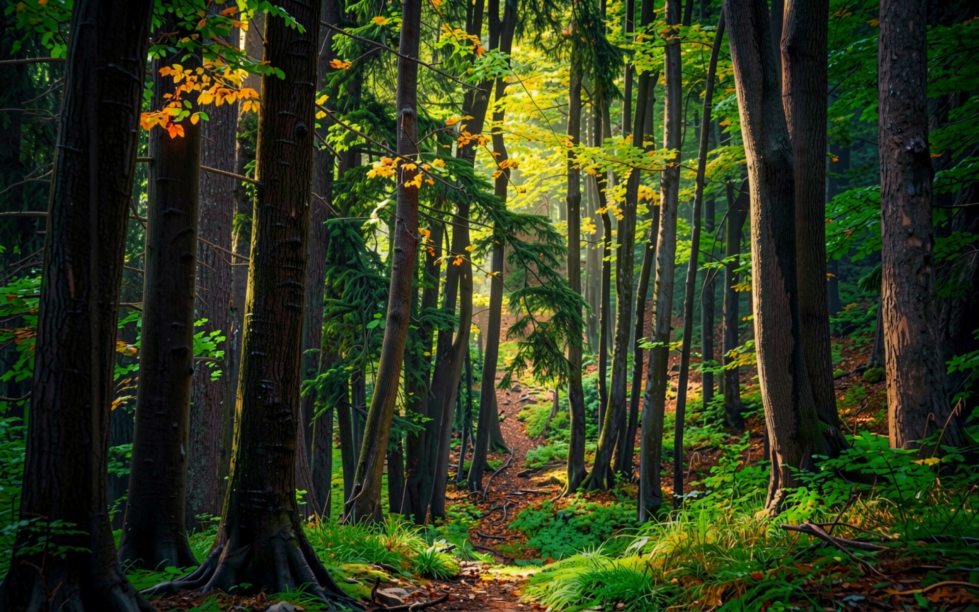 Согласно данным из nationalgeographic.com, хлорофилл в листьях деревьев поглощает свет преимущественно в синем и красном спектрах, отражая зеленый, что формирует специфическую световую среду лесных массивов. Нажмите кнопку скачивания, чтобы установить эти обои с лесом на ваш ПК или телефон прямо сейчас.