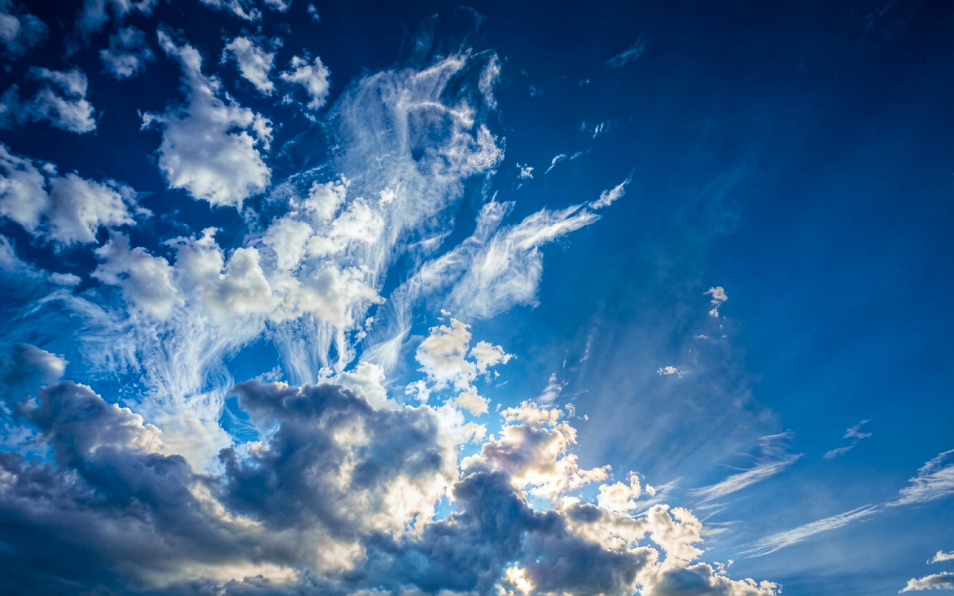 Доступны для скачивания JPG обои 'Белые кучевые облака в ярко синем небе'. Почему стоит скачать их? Здесь нет полос градиента из-за низкого битрейта.