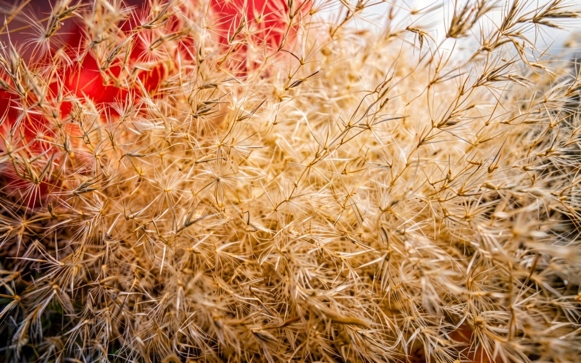 Изображение детально передает тонкие текстуры сухих стеблей и острые контуры семян. Контрастное освещение создает четкие блики на золотистых поверхностях, в то время как глубокие тени подчеркивают объем каждой частицы. Плавные градиенты красного фона создают эффект глубины, отделяя передний план от заднего. На сайте доступен удобный предпросмотр перед загрузкой для оценки качества на экране.