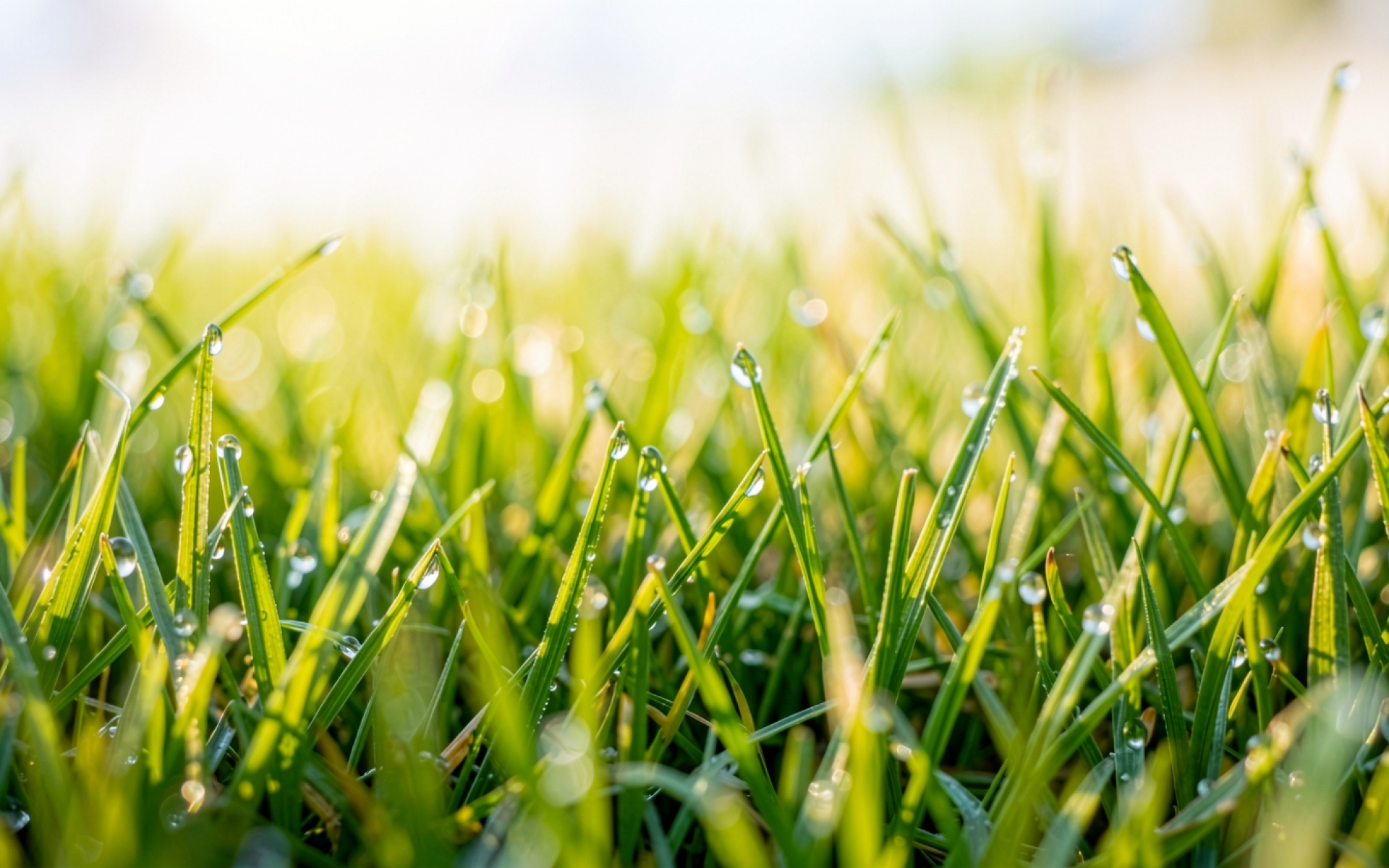 Зеленая трава с каплями росы утром обои