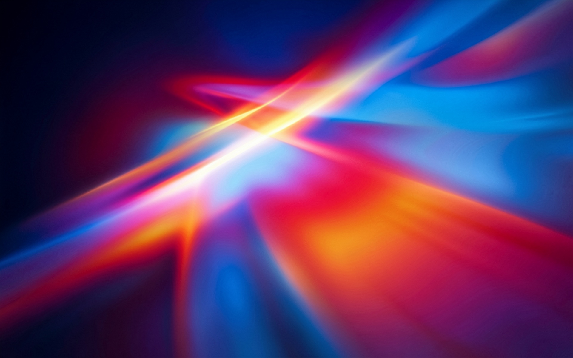 Изображение характеризуется плавными градиентами и динамичными перепадами яркости. Центральная точка пересечения лучей создает интенсивный белый блик, который плавно переходит в насыщенные синие и глубокие красные тона. Мягкие тени и размытые контуры линий создают эффект объема и глубины пространства. На сайте доступен удобный предпросмотр перед загрузкой для оценки качества на экране.