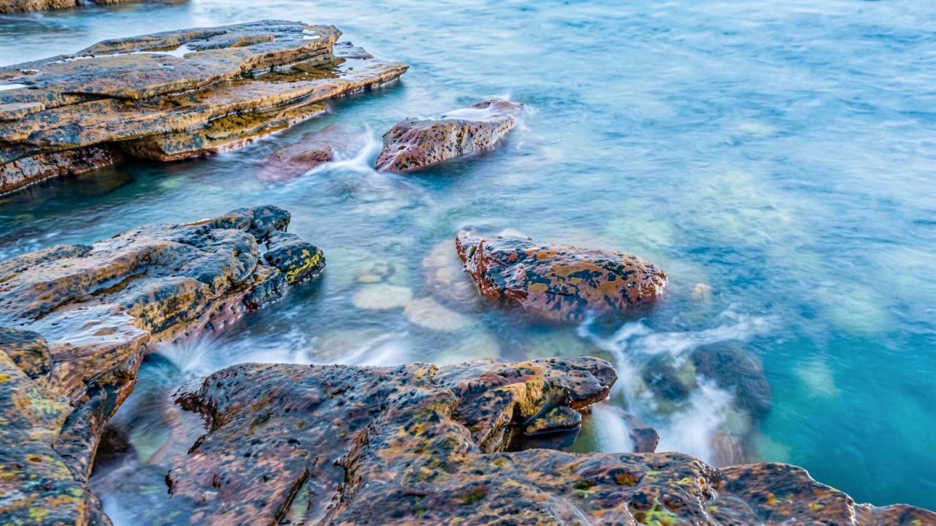 Морской пейзаж бирюзовая вода скалистый берег обои