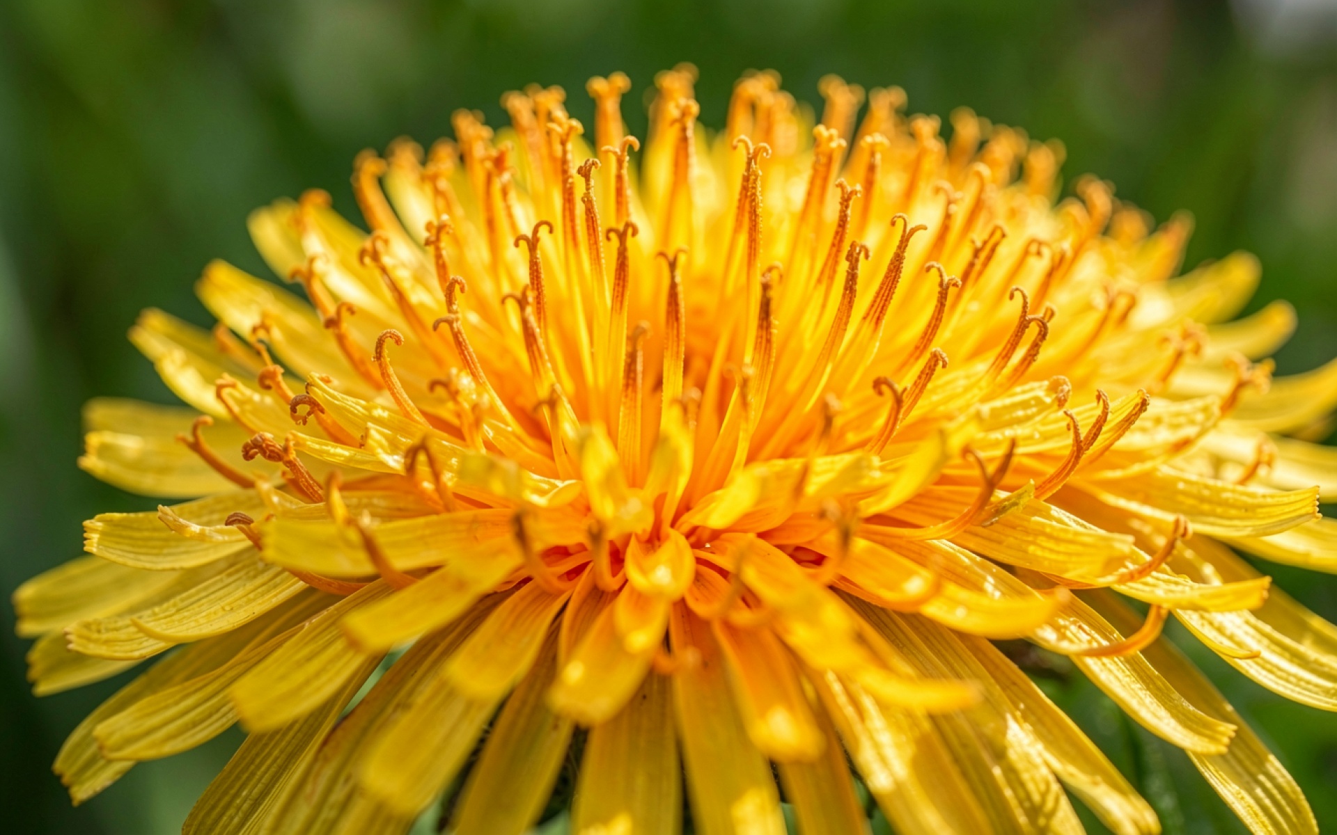 Желтый одуванчик крупным планом на зеленом фоне обои