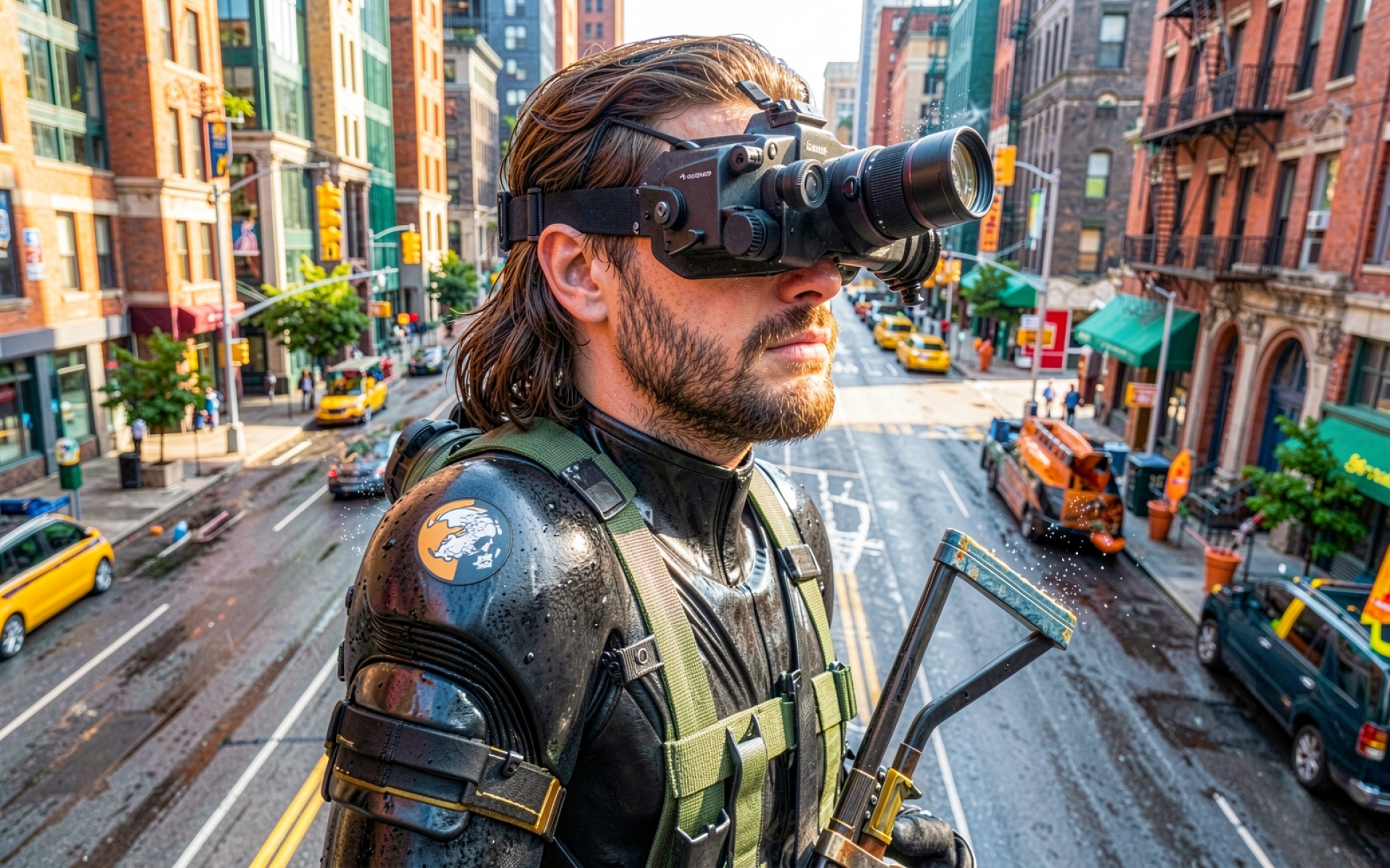Киберпанк оператор в черном костюме Нью-Йорк обои