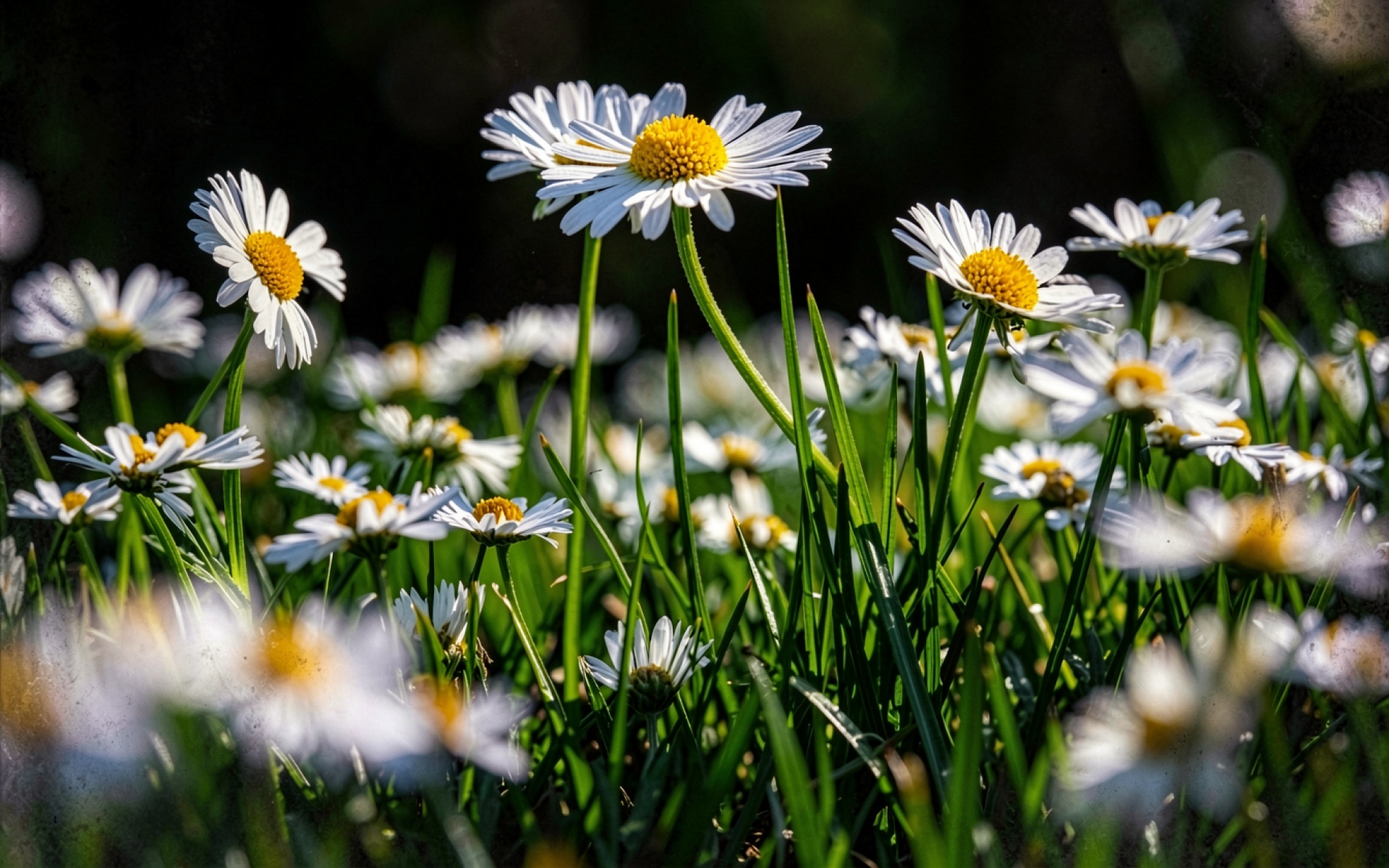 Согласно данным с botanicgardens.org, белые лепестки ромашек обладают высокой отражающей способностью, что при ярком свете создает эффект свечения краев и требует точной цветопередачи для сохранения чистоты белого цвета без пересветов. Нажмите кнопку скачивания, чтобы установить эти обои с ромашками на ваш ПК или телефон прямо сейчас.