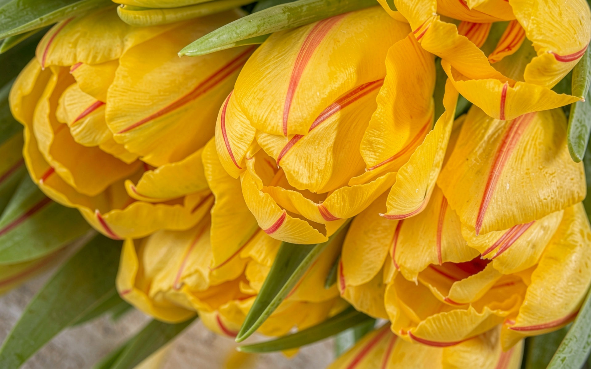 Желтые тюльпаны с красными прожилками крупным планом обои