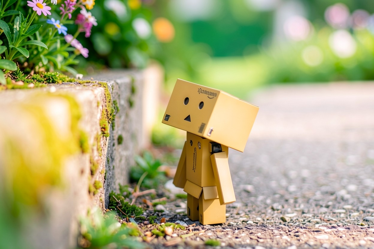 Фигурка робота из картона в летнем саду обои