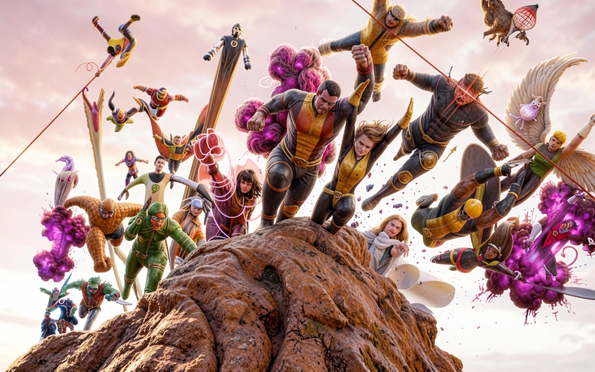 На нашем сайте вы можете скачать JPG файл обоев 'Команда Людей Икс в динамичных позах на скале', и вот почему это важно: эта JPG версия сохраняет все оттенки теней и света.