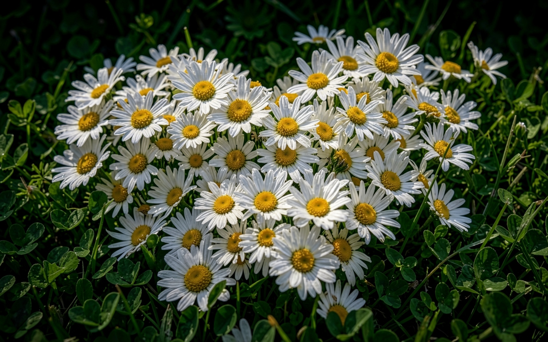 Согласно данным с botanicgardens.org, белые лепестки ромашек обладают высокой отражающей способностью, что позволяет им эффективно привлекать насекомых-опылителей даже при слабом освещении. Нажмите кнопку скачивания, чтобы установить эти обои с ромашками на ваш ПК или телефон прямо сейчас.