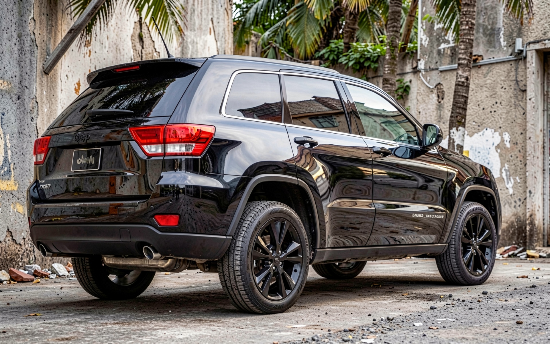 Скачивание JPG обоев «Черный Jeep Grand Cherokee в городском окружении» с нашего сайта нужно, потому что другие сайты обрезают края, а у нас полный кадр.