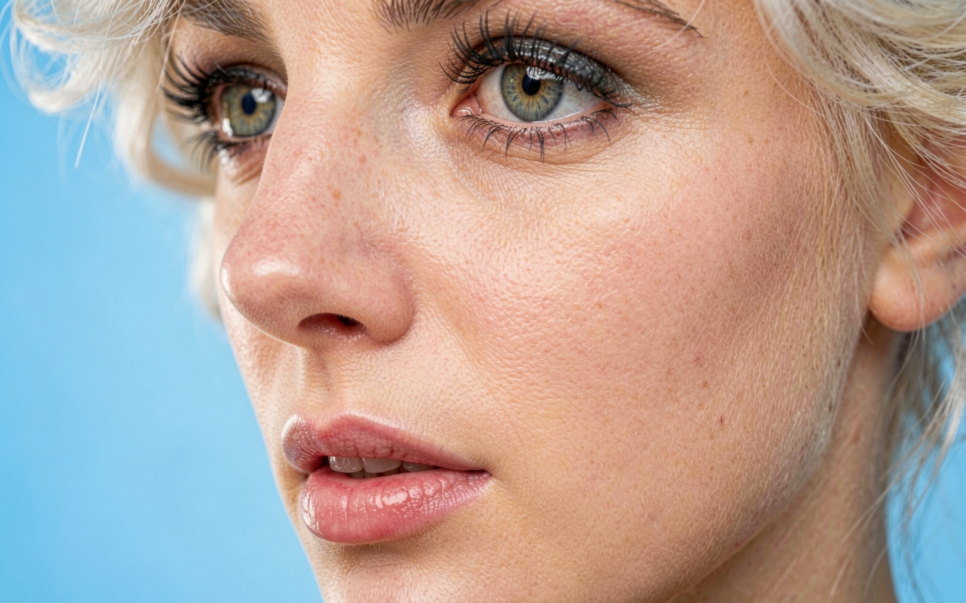 Данное изображение отличается высокой детализацией текстуры кожи, где каждая россыпь веснушек передана четко и без смазывания. Чистый голубой фон обеспечивает плавные градиенты без видимых артефактов сжатия, что создает правильный контраст с теплыми оттенками лица. На сайте реализован удобный предпросмотр перед скачиванием, чтобы оценить качество отображения на вашем экране.