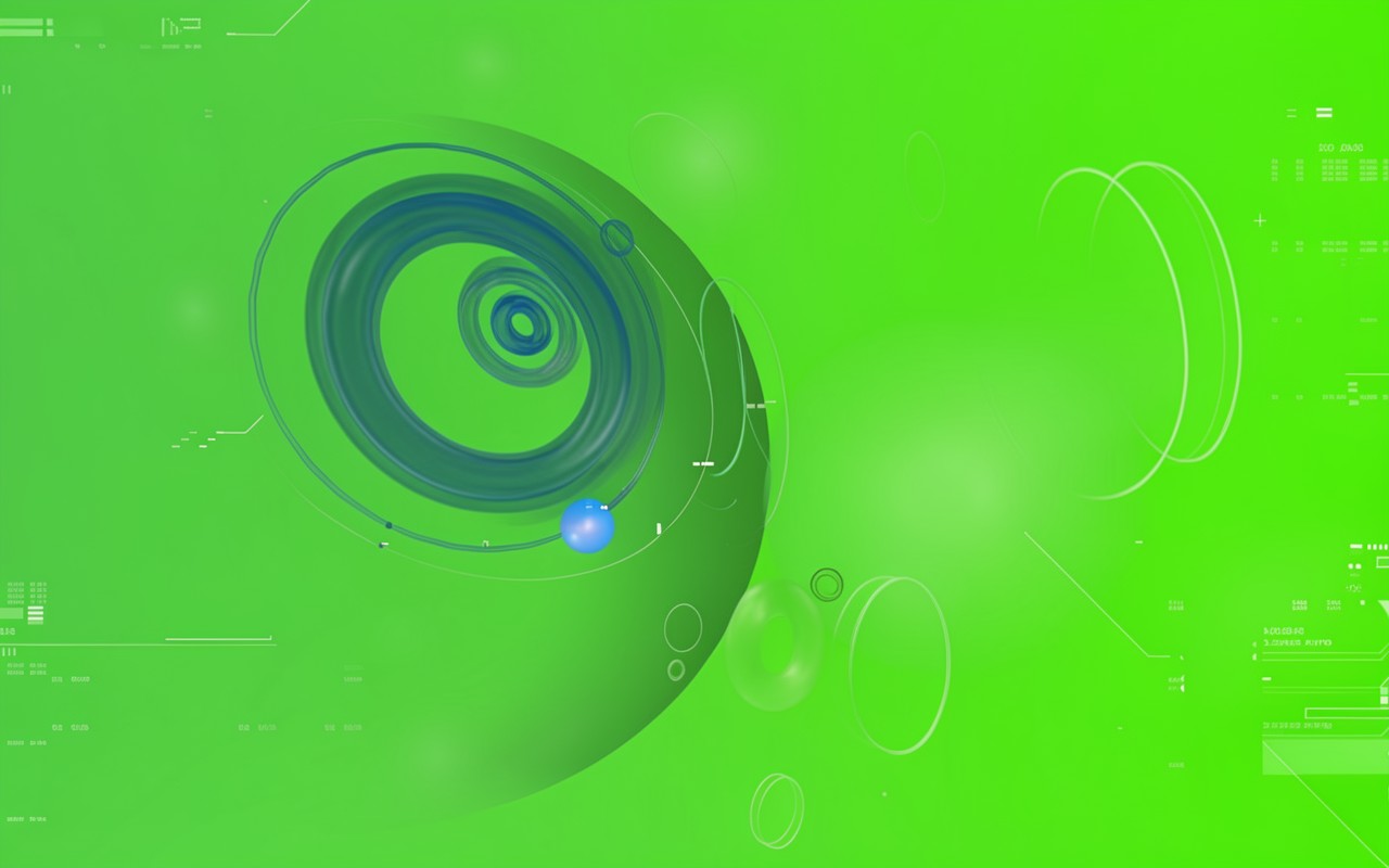 Композиция выделяется контрастом между насыщенным зеленым фоном и глубокими оттенками синего. Текстуры сфер имеют плавные градиенты, которые создают эффект объема и трехмерности. Освещение распределено равномерно, с мягкими бликами на поверхности окружностей и тонкими линиями интерфейса, добавляющими детализацию. На сайте доступен удобный предпросмотр перед загрузкой, чтобы оценить качество отображения всех элементов на вашем экране.