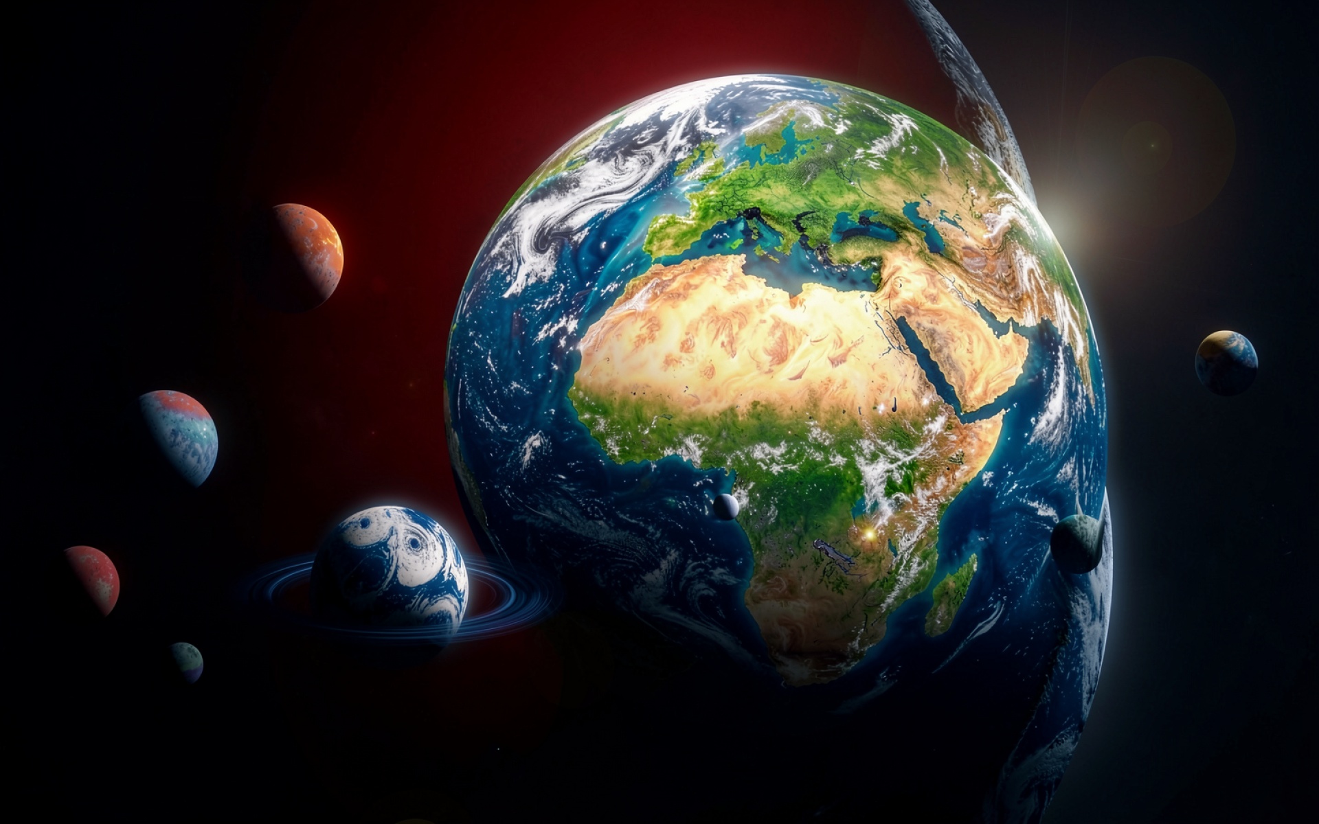 Планета Земля в космосе с красным фоном обои