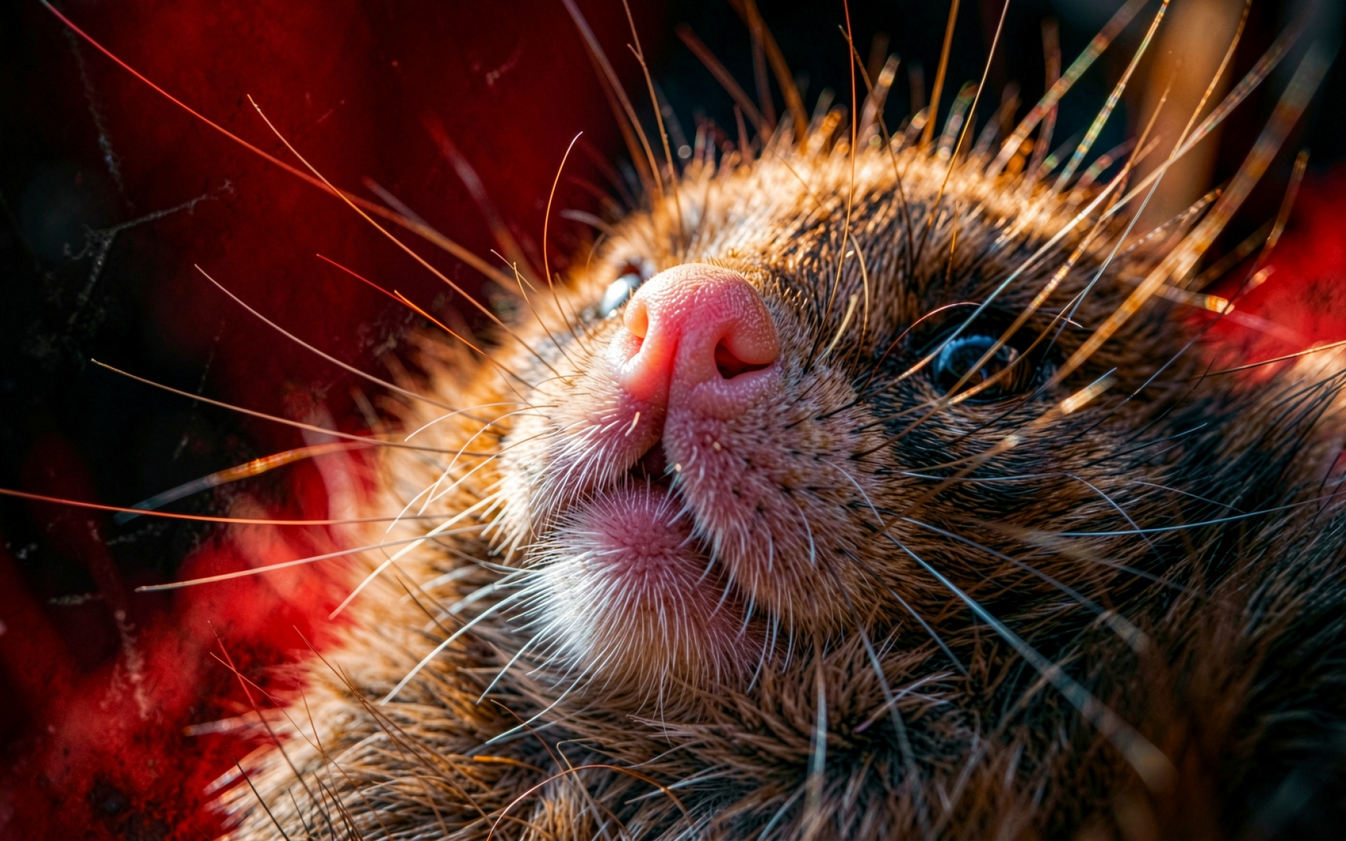 Изображение отличается высокой детализацией ворсинок шерсти и влажной текстуры поверхности носа. Контрастное красное освещение создает выразительные блики и глубокие градиенты в затененных областях, подчеркивая объем морды животного. На сайте доступен удобный предпросмотр перед скачиванием, чтобы оценить качество прорисовки каждой отдельной вибриссы на экране.