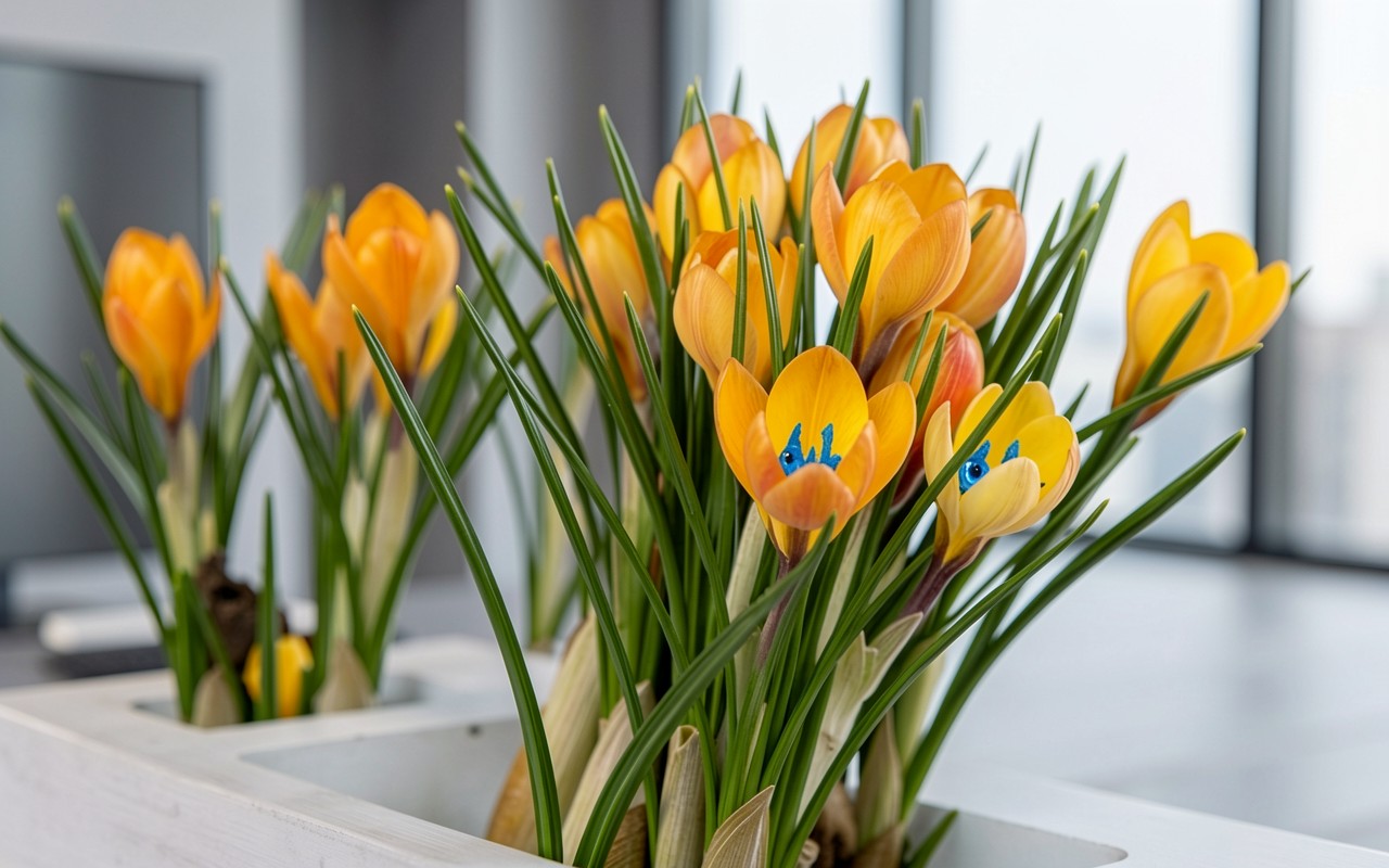 Наш сайт предлагает скачать обои «Желтые крокусы в белом деревянном ящике» в JPG, и причина простая: сохранена полная цветопередача без потери качества.