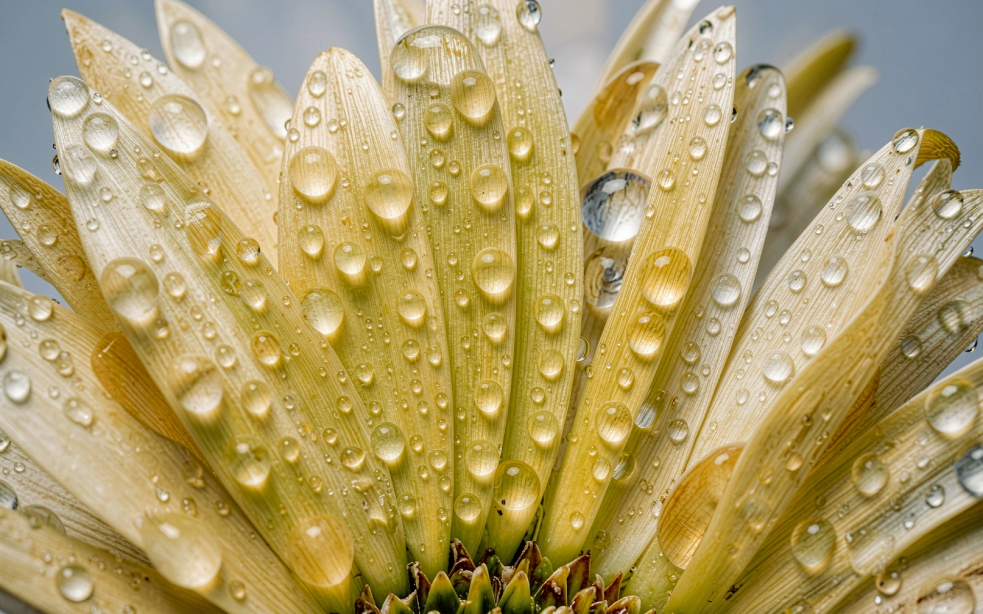 Желтый цветок с каплями росы макро обои