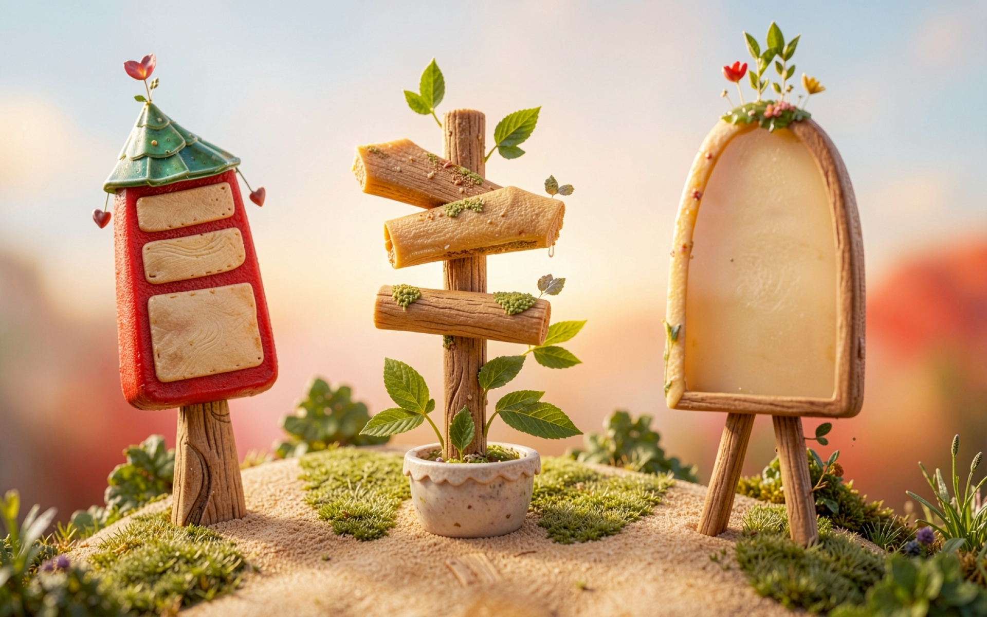 Заберите JPG-файл обоев «Миниатюрные указатели в сказочном природном окружении» на нашем сайте — и вот обоснование: альтернативы сжимают сильнее, а мы даём оригинал.