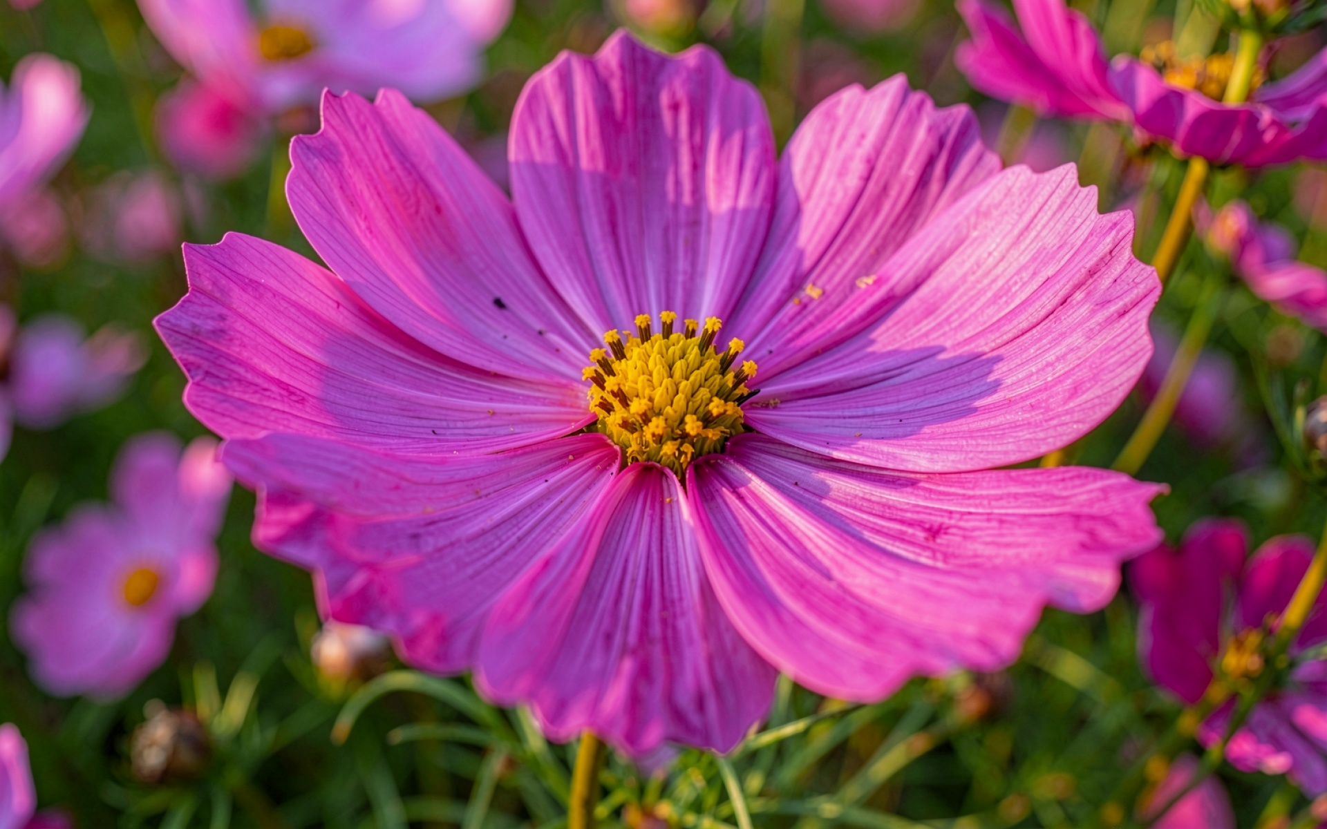 На нашем сайте можно скачать обои «Розовый цветок космея в солнечном саду» в JPG для ПК или телефона — и вот зачем: картинка прошла минимальную компрессию с сохранением деталей.