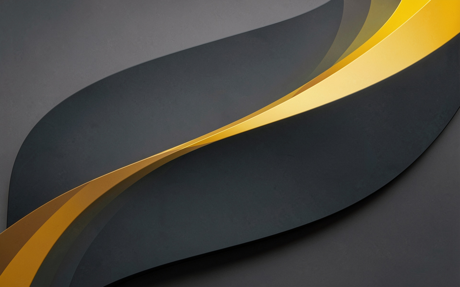 Изображение отличается высокой детализацией плавных изгибов и четкостью границ между контрастными плоскостями. Золотистые элементы имеют мягкие блики и глубокие тени, которые создают объемный эффект трехмерности. Темный фон выполнен с использованием плавных градиентов, исключающих визуальный шум. На сайте доступен удобный предпросмотр перед скачиванием, чтобы оценить качество цветопередачи на экране.