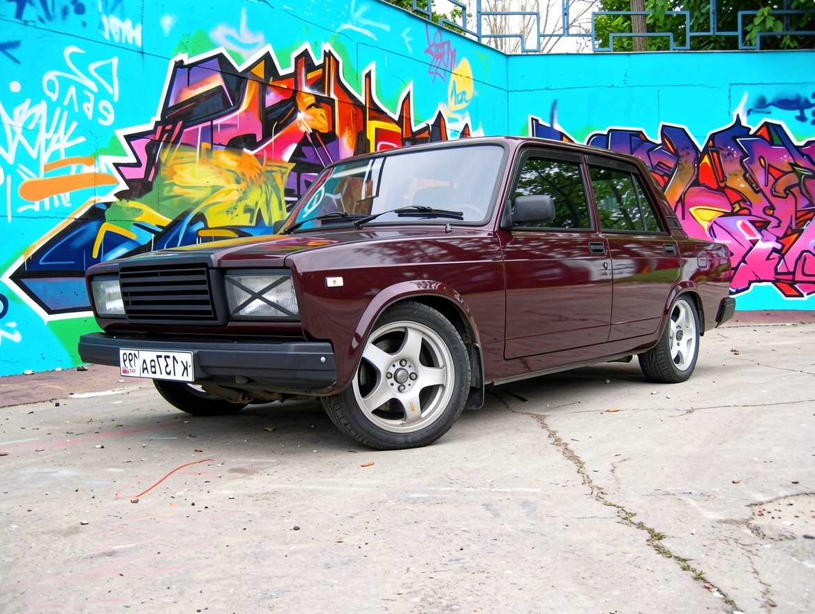 На нашем сайте можно скачать обои «Бордовый автомобиль ВАЗ на фоне граффити» в JPG для ПК или телефона — и вот зачем: альтернативы сжимают сильнее, а мы даём оригинал.