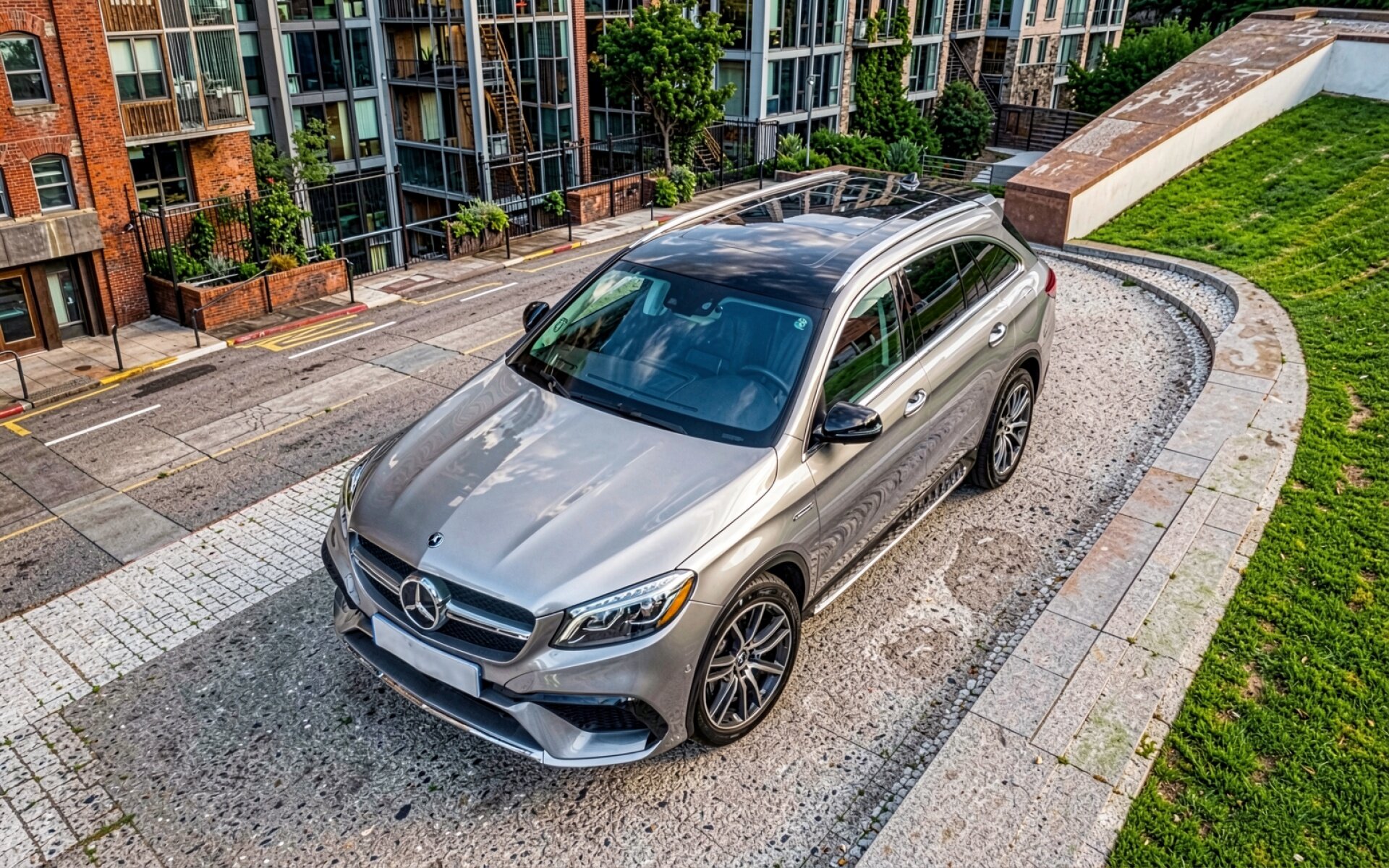 Серебристый Mercedes-Benz GLC в городском окружении обои