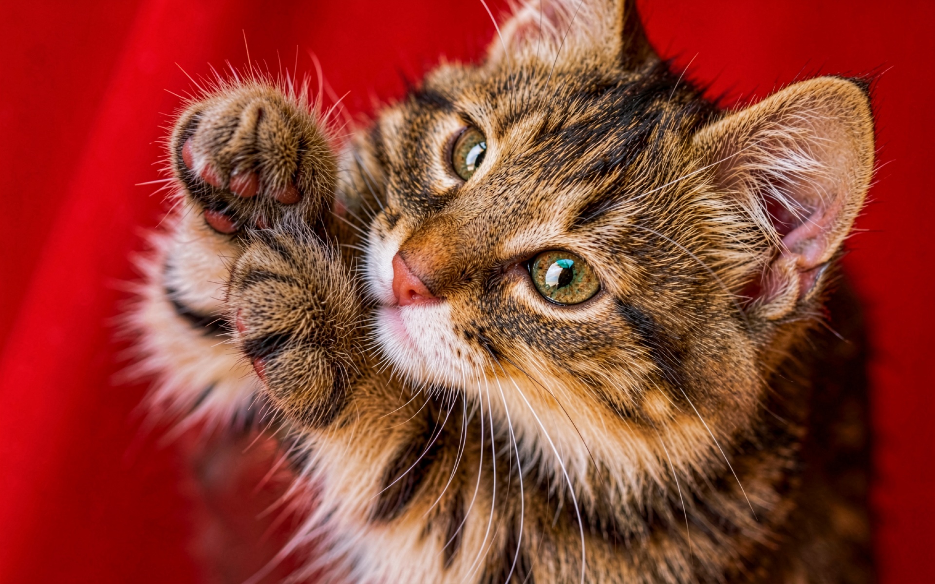 Загрузка JPG обоев Рыжий полосатый котенок на красном фоне с нашего сайта необходима, так как они подходят для профессионального редактирования без артефактов.