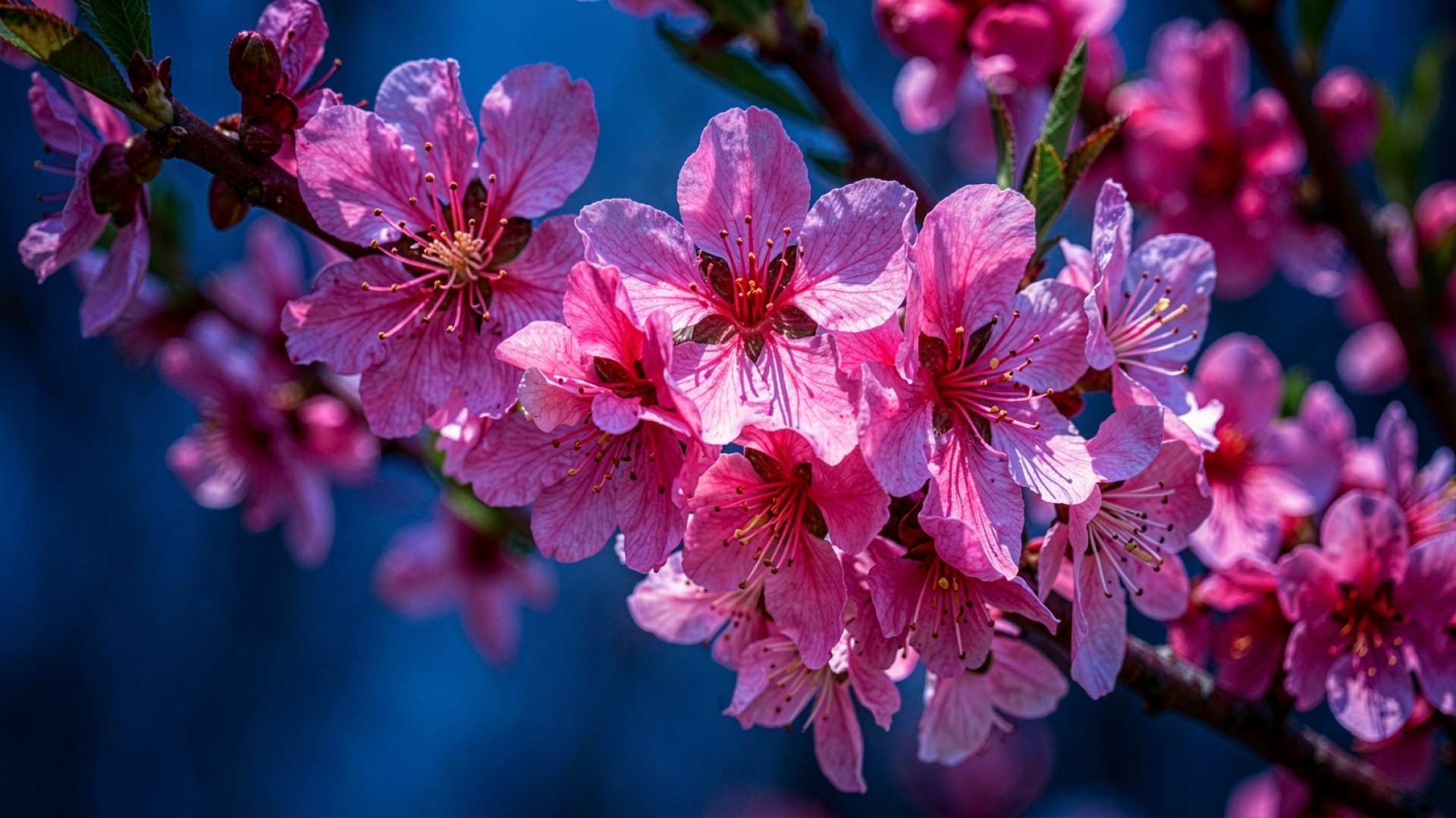 Загрузка JPG обоев Розовые цветы персика на синем фоне с нашего сайта необходима, так как альтернативы сильнее сжимают изображение, но мы предоставляем оригинал.