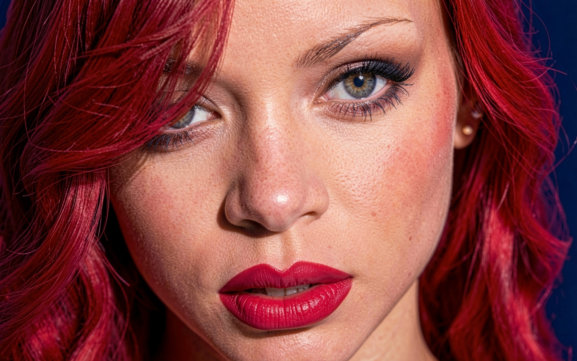 Скачайте JPG файл обоев Девушка с красными волосами на синем фоне на нашем сайте – и вот причина: файл оптимизирован для установки на рабочий стол и экран телефона.