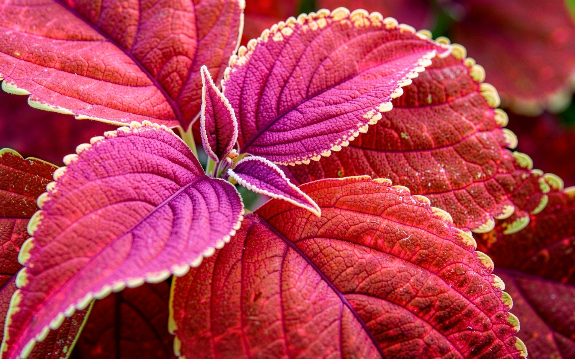 Листья колеуса пурпурные с желтой каймой обои