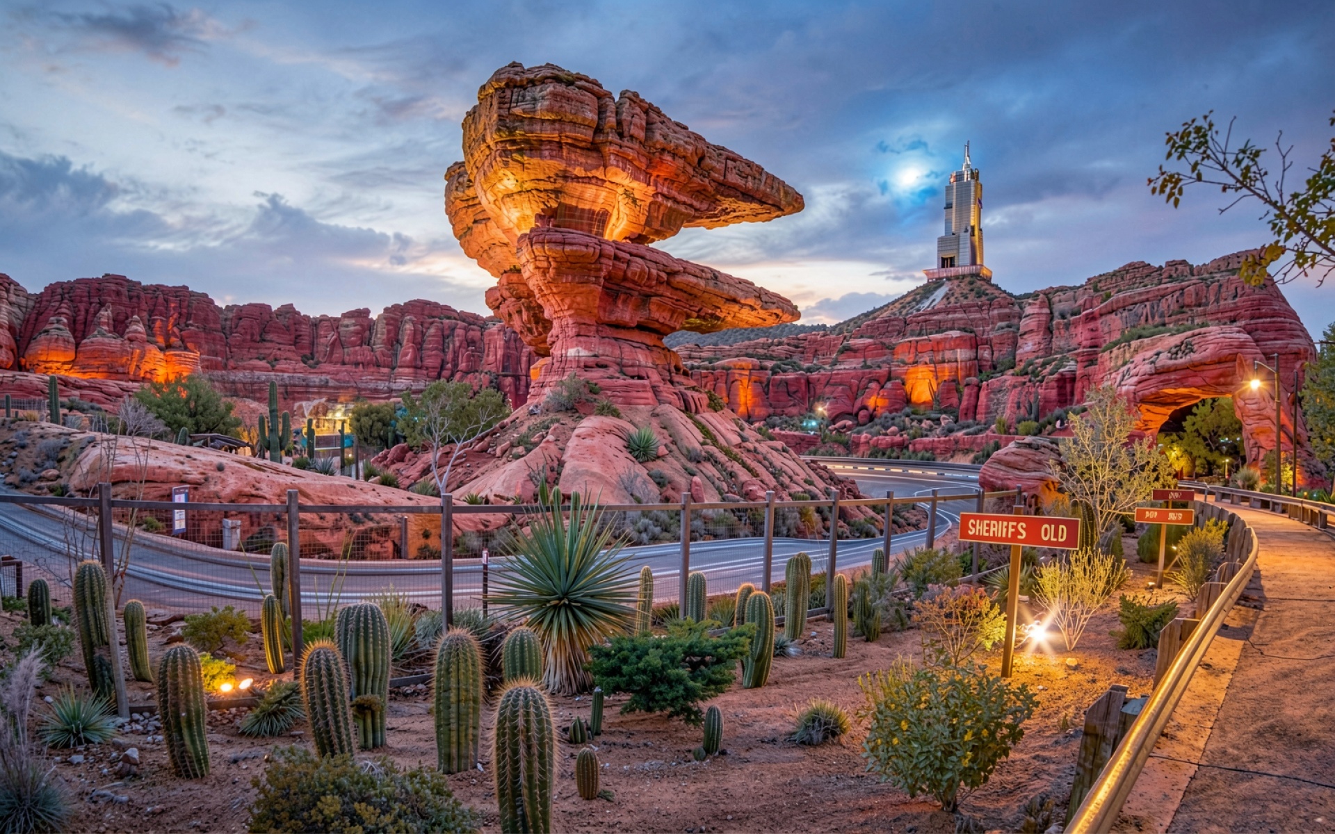 Красные скалы пустыни с вечерней подсветкой обои