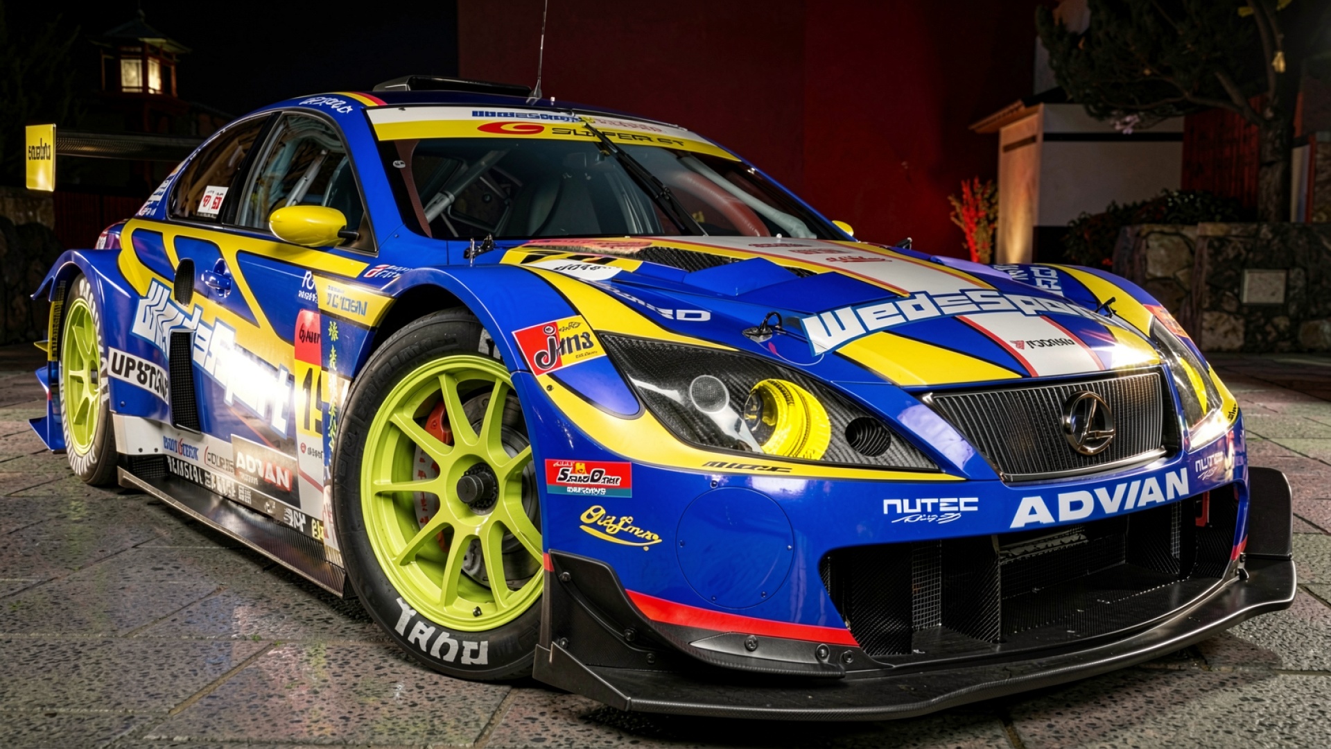 Скачайте JPG файл обоев Гоночный автомобиль Lexus синий желтый ночной город на нашем сайте – и вот почему: изображение прошло минимальное сжатие, что позволило сохранить все мелкие детали