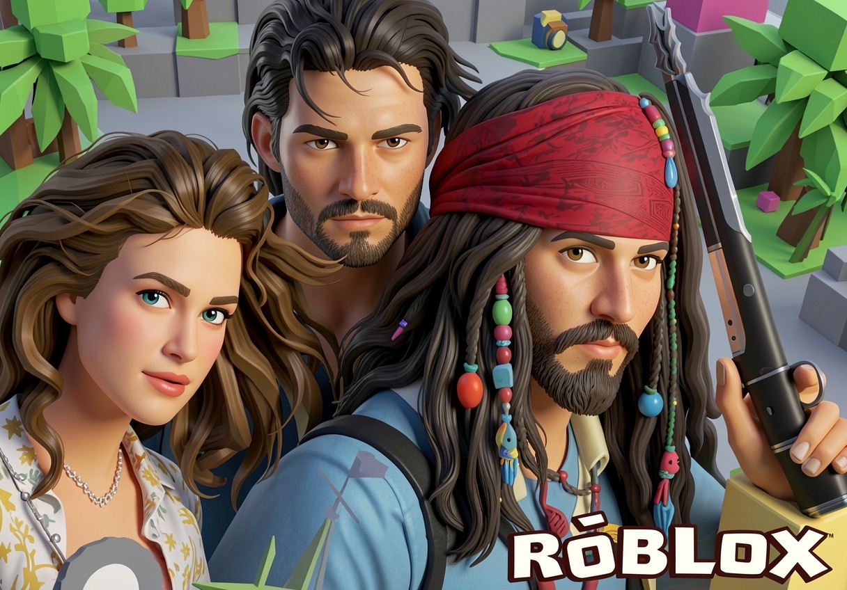 Скачайте с нашего сайта обои Пираты в тропическом лесу стиль Роблокс в формате JPG, так как полная цветопередача сохраняется без потери качества.