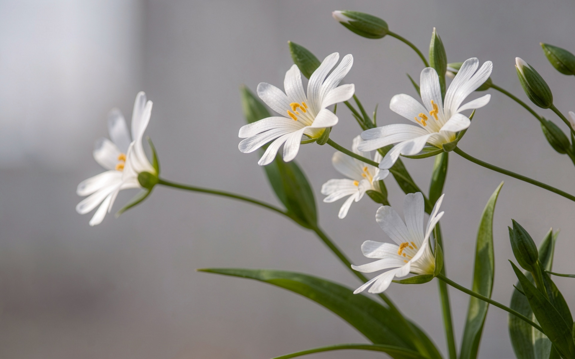 Загрузка JPG обоев Белые цветы стебельбиума на сером фоне с нашего сайта необходима потому что изображение прошло минимальное сжатие сохраняя детали.