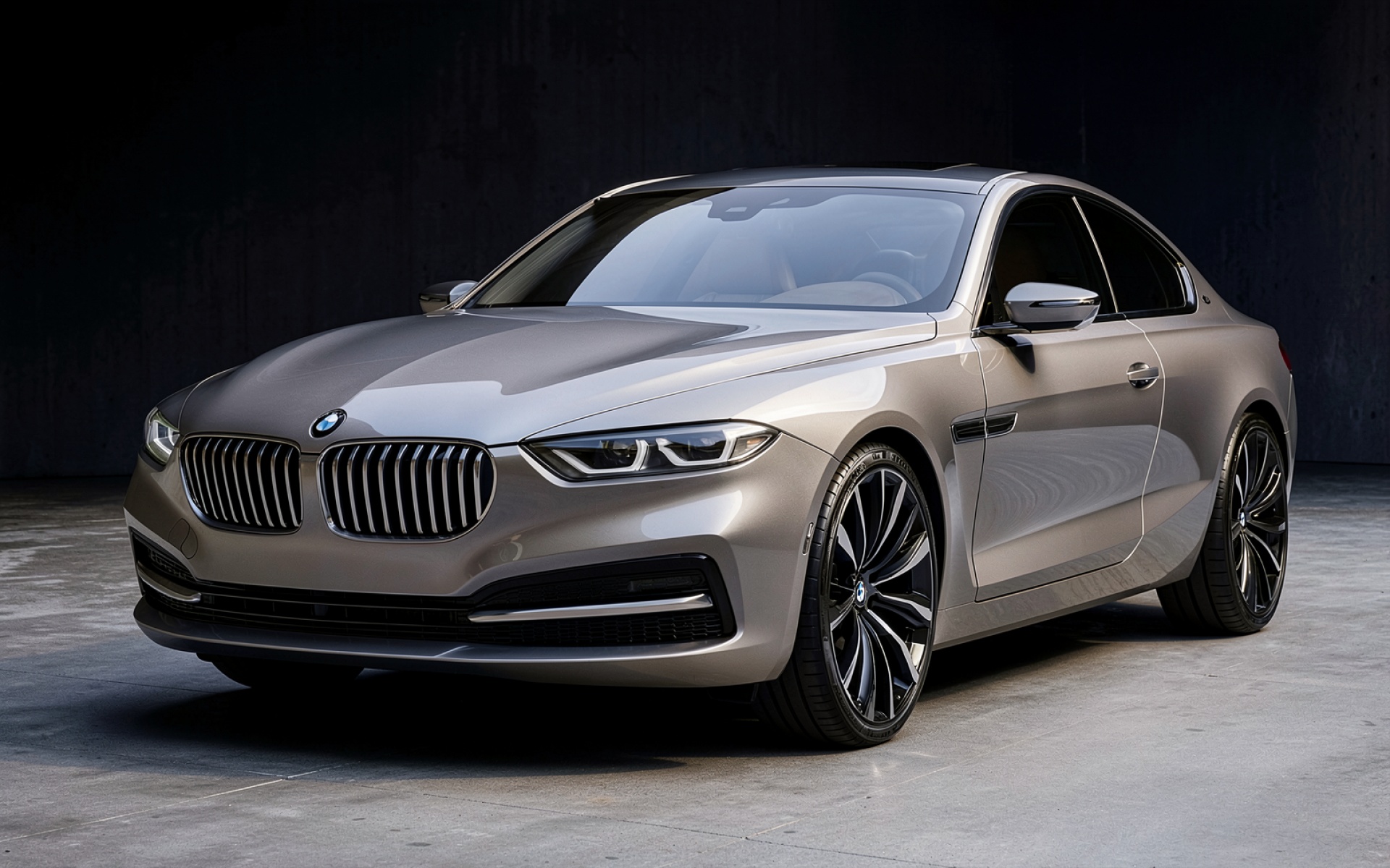 Серый автомобиль BMW в темном гараже обои