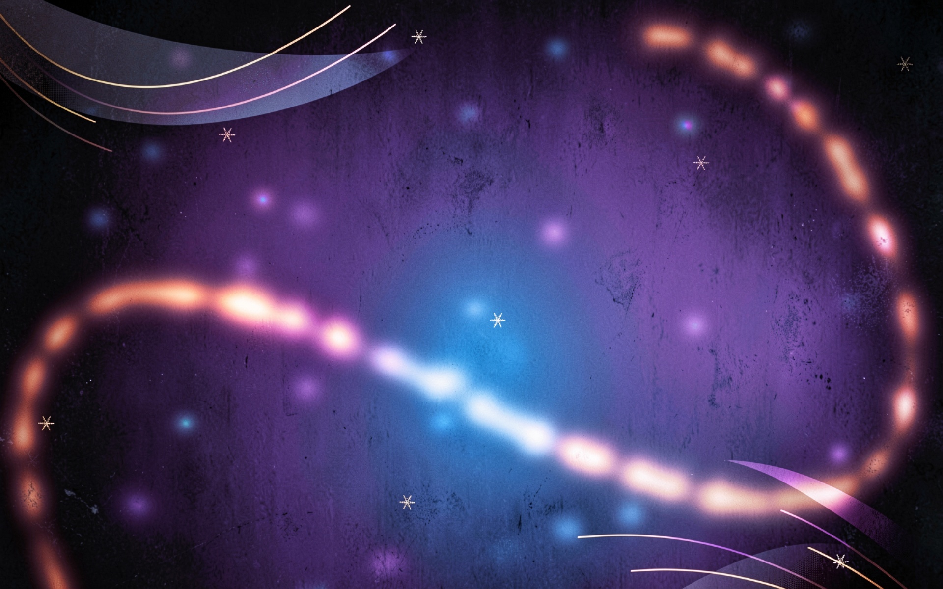 Изображение характеризуется глубоким градиентом от темно-синего к насыщенному пурпурному. Текстура поверхности имитирует матовый бетон или шлифованный металл с легкими потертостями. Световые акценты создают эффект мягкого свечения вокруг неоновых кривых, где блики плавно переходят в глубокие тени. Контрастные белые искры и тонкие дуги добавляют композиции динамики. На сайте доступен удобный предпросмотр перед скачиванием для оценки качества на экране.
