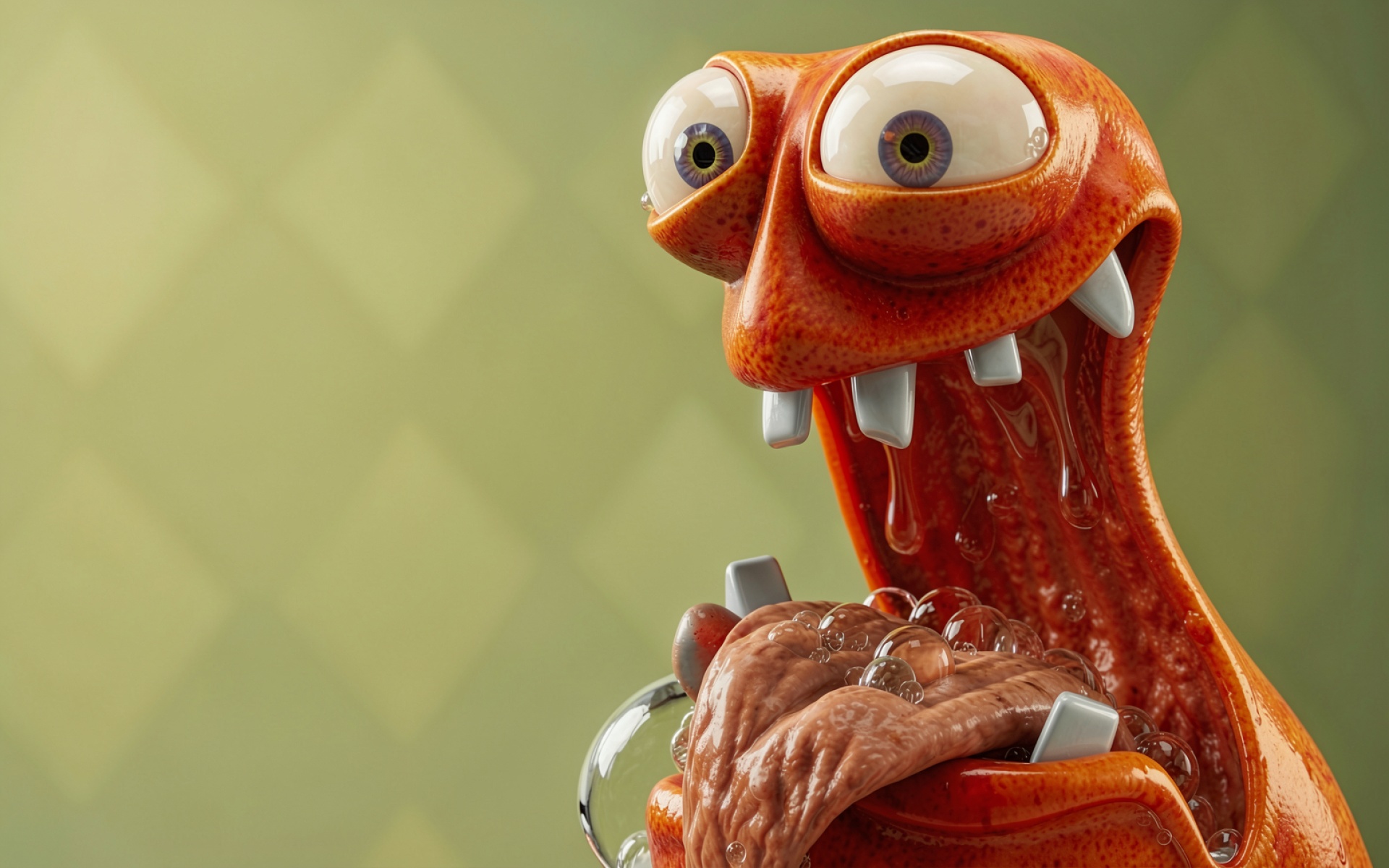 Оранжевый монстр с открытым ртом в 3D стиле обои
