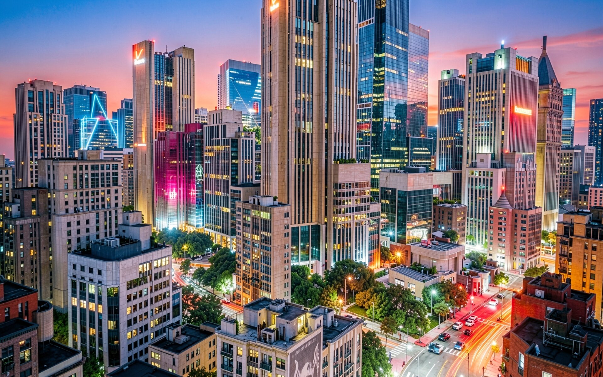 Согласно данным architecturaldigest.com, использование энергоэффективного стекла с низким коэффициентом излучения в современных небоскребах позволяет регулировать светопропускание и отражать значительную часть солнечного тепла, что влияет на цветопередачу фасадов при вечернем свете. Нажмите кнопку скачивания, чтобы установить эти обои с небоскребами на ваш ПК или телефон прямо сейчас.