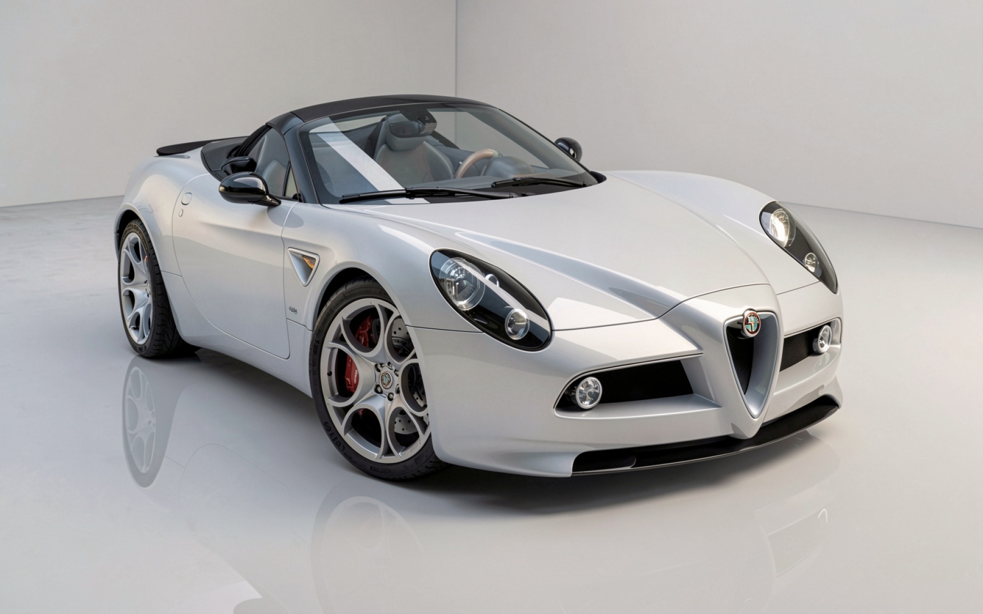 Серебристый автомобиль Alfa Romeo в белой студии обои