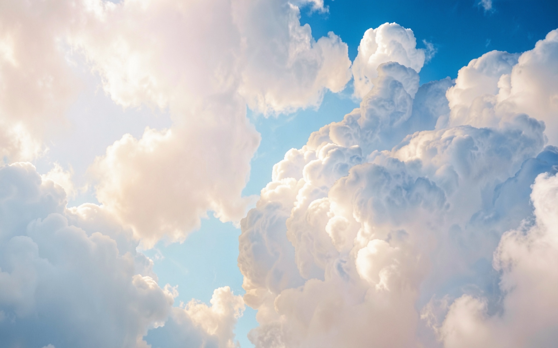 Изображение передает объемные текстуры водяного пара с мягкими переходами света и тени. Контраст между насыщенным лазурным фоном и белоснежными вершинами создает эффект глубины. Градиенты освещения подчеркивают плотность облачных массивов, а тонкие блики на краях имитируют естественное рассеивание солнечных лучей. Перед загрузкой доступен удобный предпросмотр для оценки качества отображения на вашем экране.