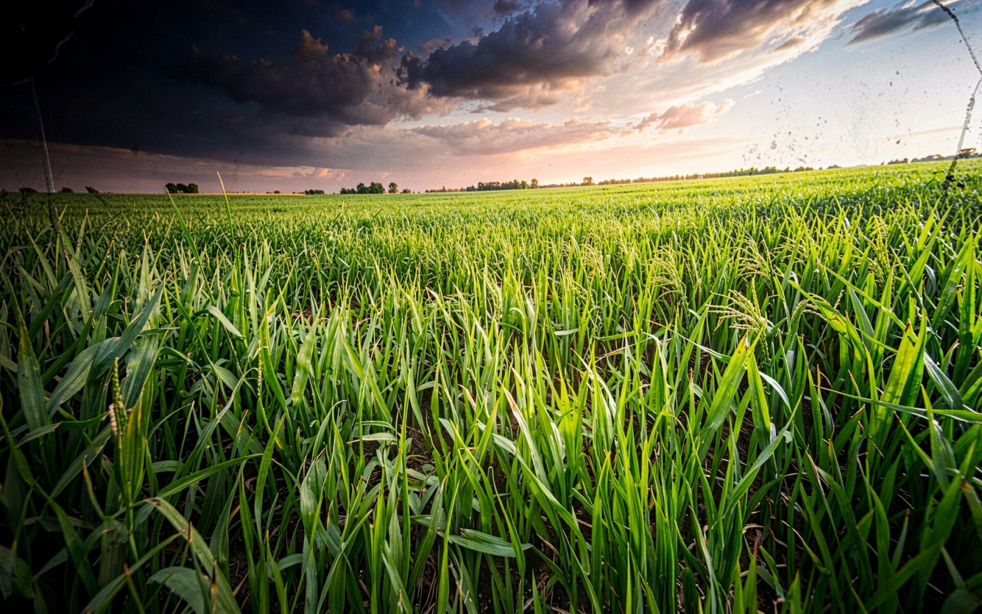 Зеленое рисовое поле под грозовым небом обои