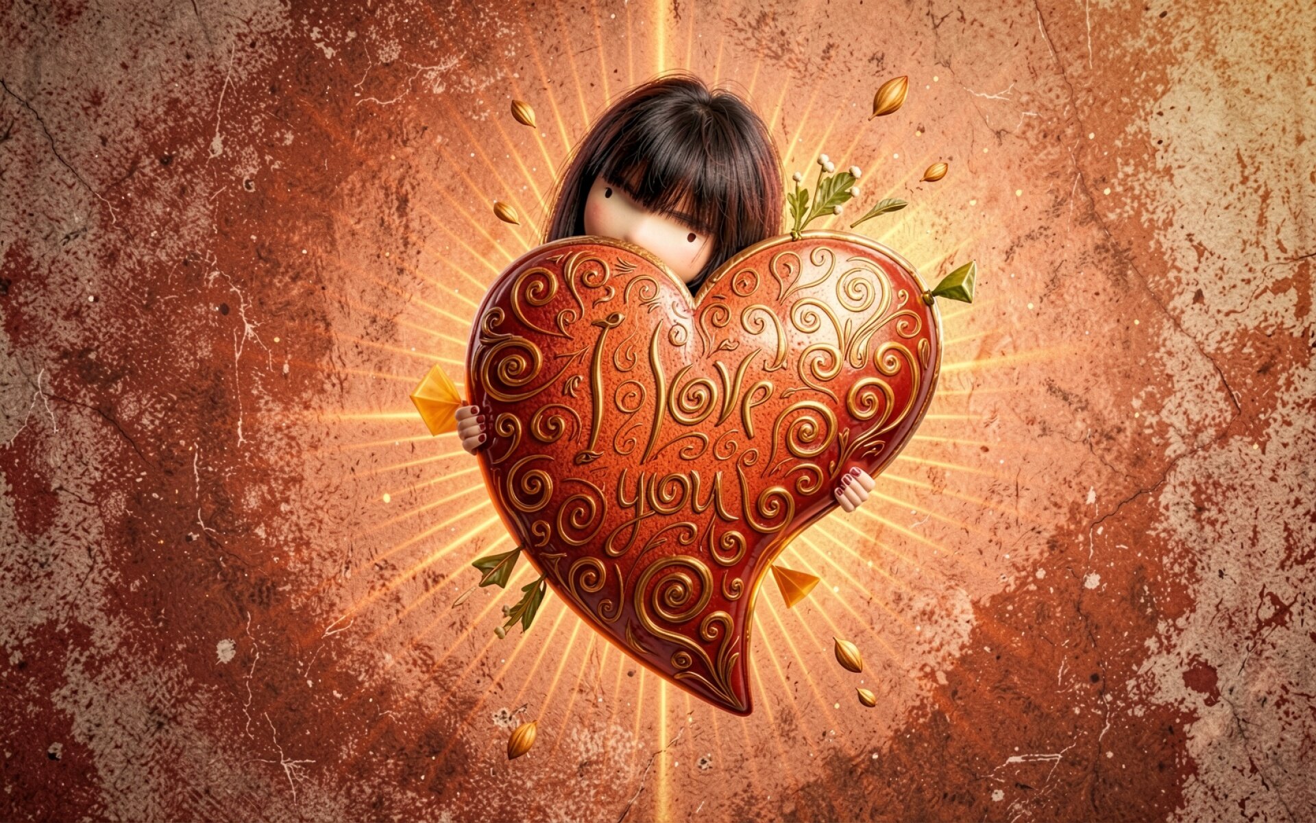 Девочка с красным сердцем в теплых тонах обои