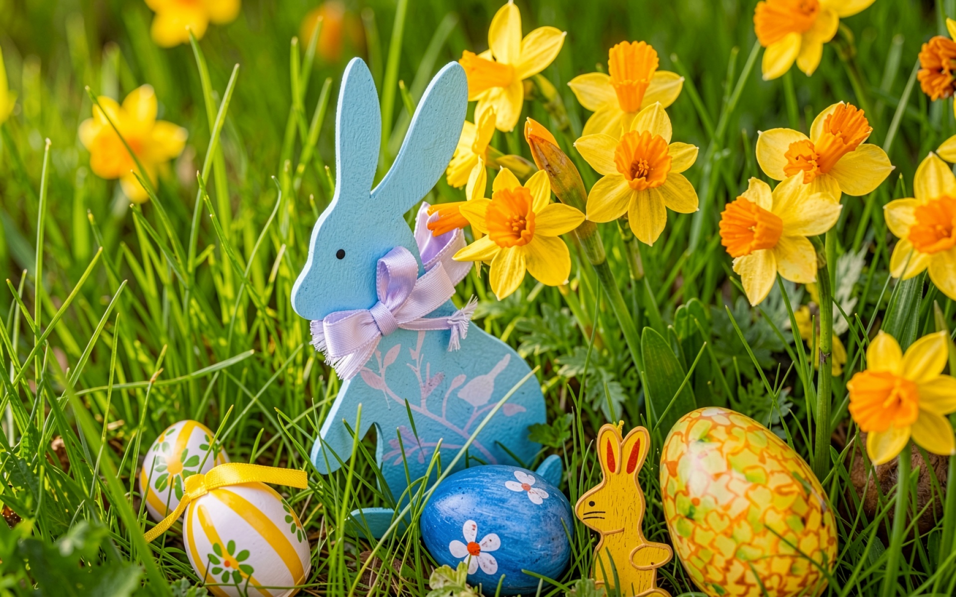 На нашем сайте вы можете скачать обои Голубой деревянный кролик среди желтых нарциссов в JPG для ПК или телефона – и вот почему: эта JPG версия сохраняет все оттенки теней и света.
