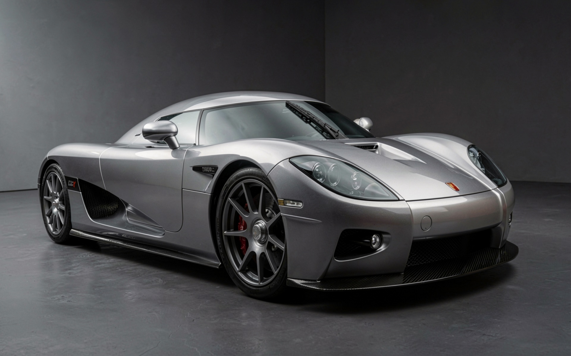 Серебристый гиперкар Saleen S7 в темной студии обои