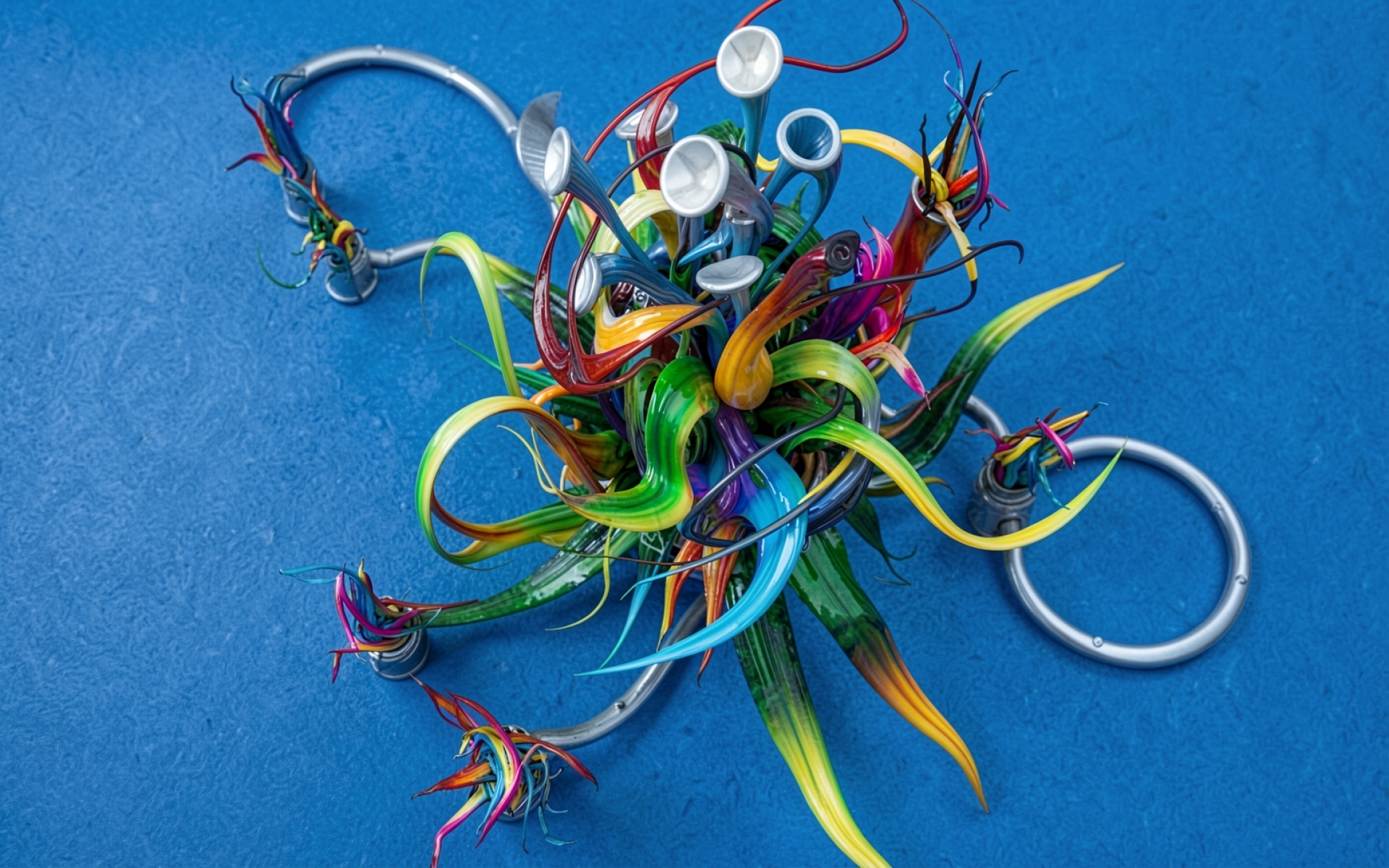 На нашем сайте вы можете скачать JPG файл обоев 'Абстрактная разноцветная скульптура на синем фоне', и вот почему это важно: только этот JPG сохраняет метаданные цветокоррекции.