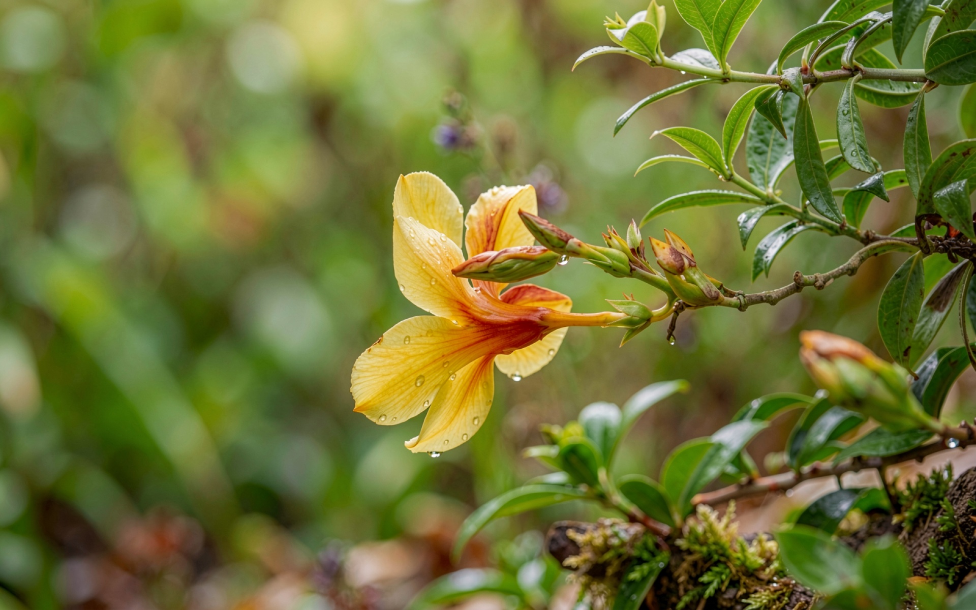 Здесь вы можете скачать JPG обои под названием 'Желтый цветок с каплями росы в лесу', и почему вы должны это сделать: они подходят для профессионального редактирования без артефактов.