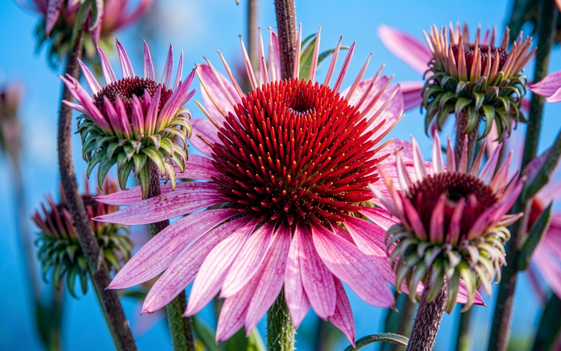 Согласно данным из botanicgardens.org, структура центрального диска эхинацеи состоит из множества трубчатых цветков, которые создают характерный конусообразный рельеф для привлечения опылителей. Нажмите кнопку скачивания, чтобы установить эти обои с эхинацеей на ваш ПК или телефон прямо сейчас.