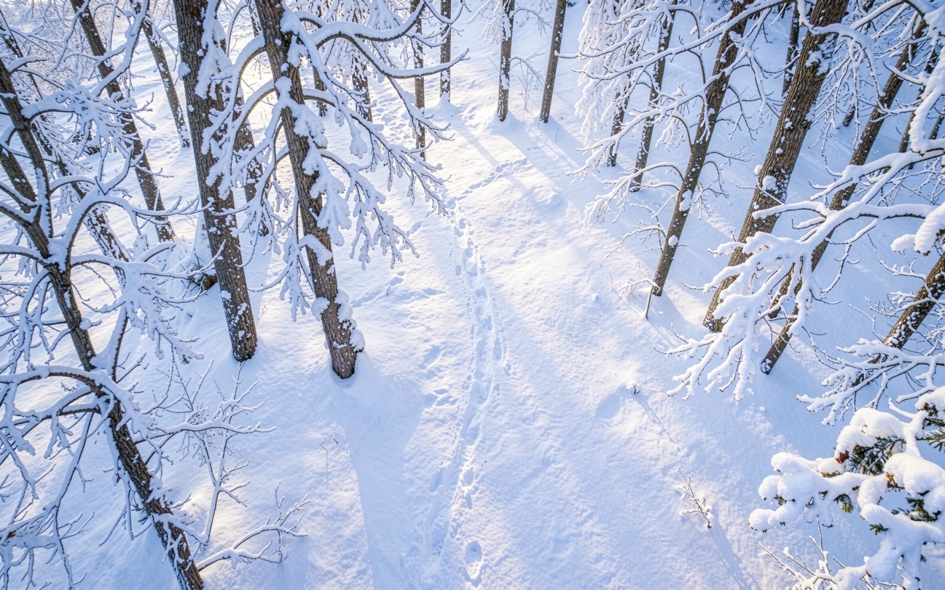 Скачайте JPG файл обоев Зимний заснеженный лес с тропинкой в солнечный день на нашем сайте – и вот причина: только этот JPG сохраняет метаданные цветокоррекции.