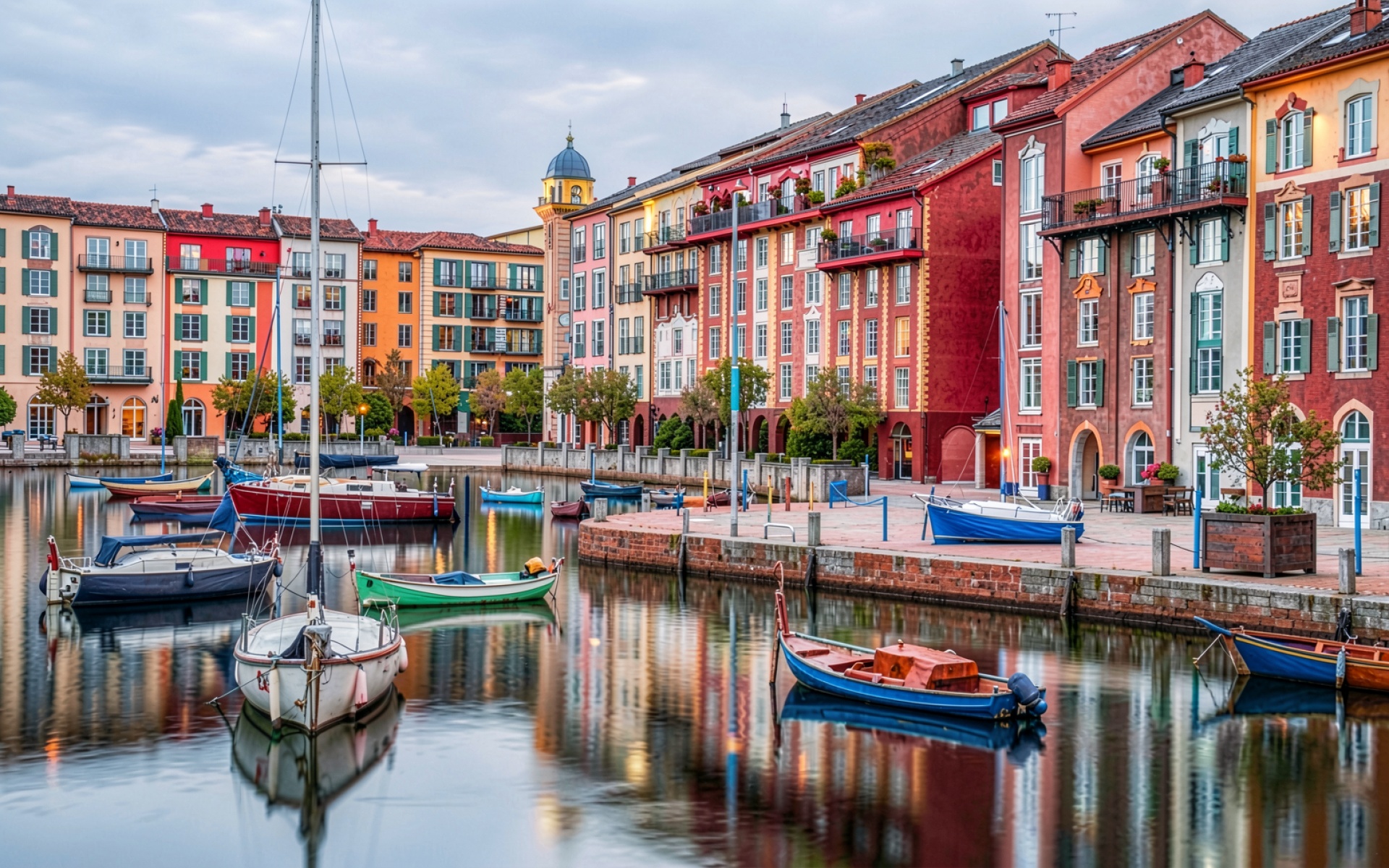 <Техническое исполнение кадра подчеркивает текстуру фасадной штукатурки и старого камня. Мягкое освещение создает плавные градиенты на стенах зданий, а глубокие тени в оконных проемах добавляют объему. Отражения лодок и архитектуры в воде переданы с высокой точностью, сохраняя четкость линий и насыщенность цветовых переходов. На сайте доступен удобный предпросмотр перед скачиванием для оценки качества на экране.