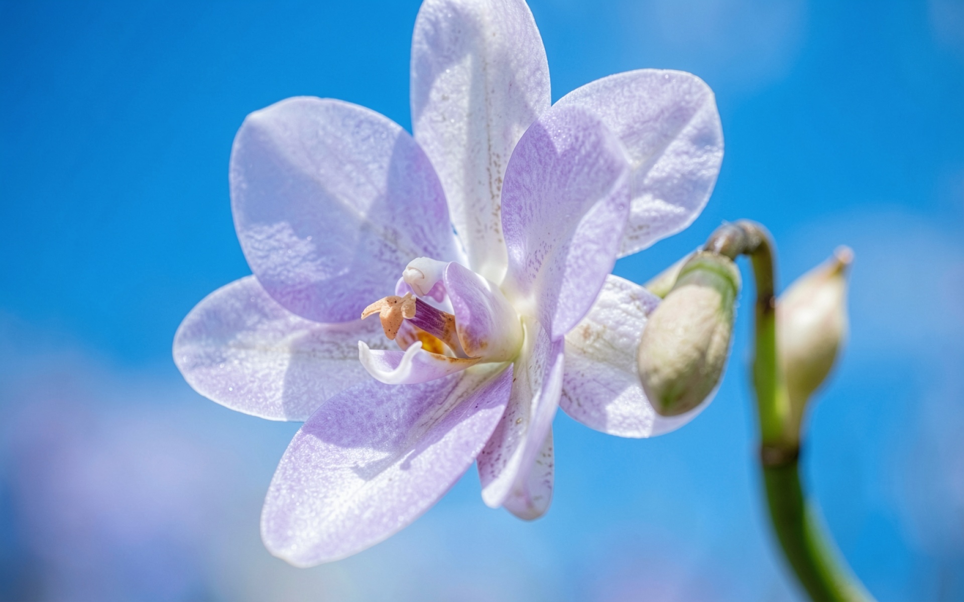 Скачайте JPG файл обоев Сиреневая орхидея на ярко голубом фоне на нашем сайте – и вот причина: эта JPG версия сохраняет все оттенки теней и света.