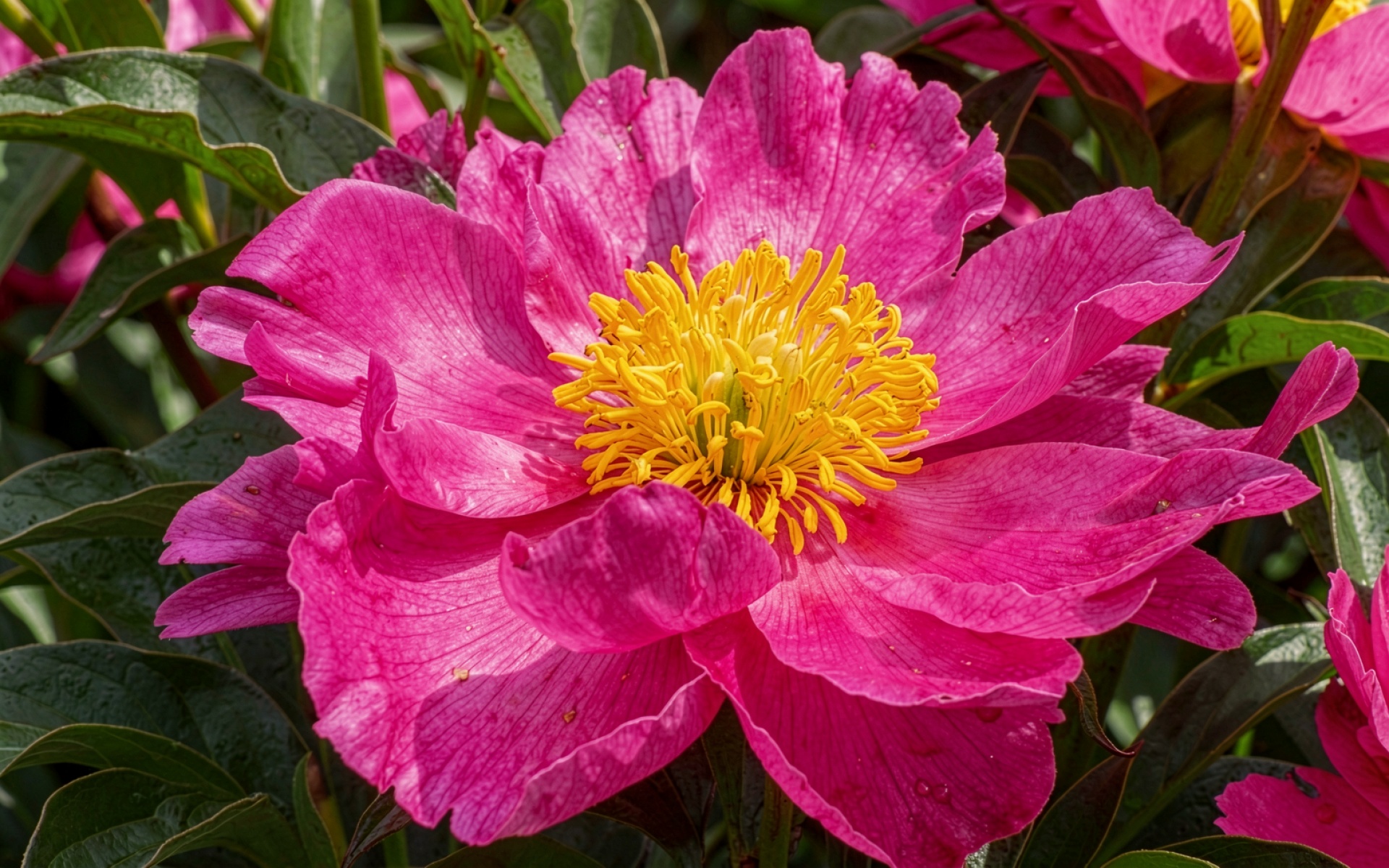 Согласно данным из botanicgardens.org, насыщенный розовый пигмент лепестков пиона обусловлен высокой концентрацией антоцианов, которые защищают ткани растения от ультрафиолетового излучения и привлекают насекомых-опылителей за счет специфического отражения света. Нажмите кнопку скачивания, чтобы установить эти обои с пионом на ваш ПК или телефон прямо сейчас.